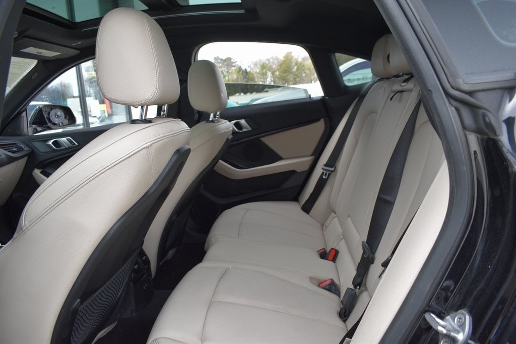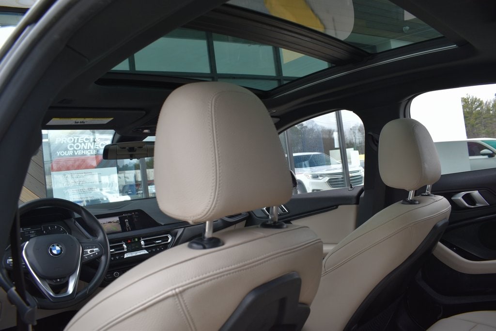 This vehicle comes equipped with Connected Package Pro, Convenience Package (Comfort Access Keyless Entry, Lumbar Support, and Panoramic Moonroof), 10 Speakers, 4-Wheel Disc Brakes, ABS brakes, Air Conditioning, Alloy wheels, AM/FM radio: SiriusXM with 360L, Auto High-beam Headlights, Auto-dimming door mirrors, Auto-dimming Rear-View mirror, Automatic temperature control, BMW Assist eCall, BMW TeleServices, Brake assist, Bumpers: body-color, Compass, ConnectedDrive Services, Delay-off headlights, Driver door bin, Driver vanity mirror, Dual front impact airbags, Dual front side impact airbags, Electronic Stability Control, Emergency communication system: BMW Assist eCall, Exterior Parking Camera Rear, Four wheel independent suspension, Front anti-roll bar, Front Bucket Seats, Front Center Armrest, Front dual zone A/C, Front fog lights, Front reading lights, Fully automatic headlights, Heated door mirrors, Heated Front Seats, Heated Front Seats & Steering Wheel, Heated Steering Wheel, Hi-Fi Sound System, Illuminated entry, Knee airbag, Low tire pressure warning, Memory seat, Navigation, Navigation System, Occupant sensing airbag, Outside temperature display, Overhead airbag, Panic alarm, Passenger door bin, Passenger vanity mirror, Power door mirrors, Power driver seat, Power Front Seats, Power passenger seat, Power steering, Power windows, Radio data system, Radio: AM/FM Audio System, Rain sensing wipers, Rear anti-roll bar, Rear reading lights, Rear seat center armrest, Rear window defroster, Remote keyless entry, Security system, SensaTec Upholstery, SiriusXM w/360L, Speed control, Speed-sensing steering, Speed-Sensitive Wipers, Split folding rear seat, Sport Seats, Sport steering wheel, Steering wheel mounted audio controls, Tachometer, Telescoping steering wheel, Tilt steering wheel, Traction control, Trip computer, Turn signal indicator mirrors, Variably intermittent wipers, and Wheels: 17" x 7.5" Double-Spoke .