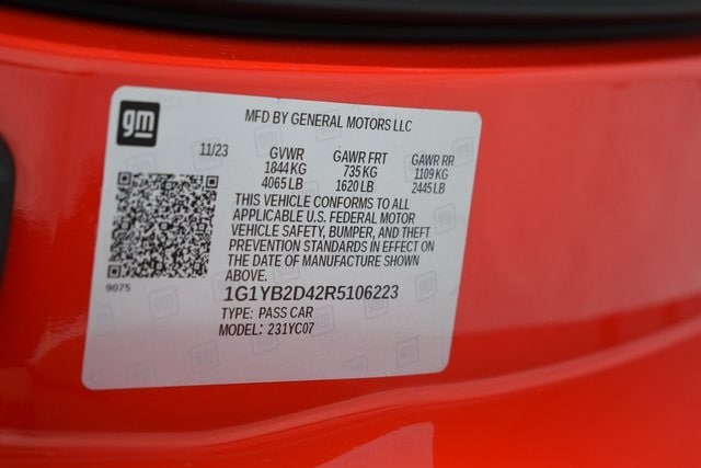 Torch Red 2024 Chevrolet Corvette Stingray 2LT RWD 8-Speed Dual Clutch 6.2L V8 14 Speakers, 2 Cargo Nets, 4-Wheel Disc Brakes, 8-Way Power Driver Seat Adjuster, 8-Way Power Passenger Seat Adjuster, ABS brakes, Air Conditioning, All-Weather Floor Liners w/Jake Logo (LPO), Alloy wheels, AM/FM radio: SiriusXM, Auto High-beam Headlights, Auto-dimming door mirrors, Auto-dimming Rear-View mirror, Automatic temperature control, Body-Color High Wing Spoiler (LPO), Bose Performance Series Sound System w/14 Speakers, Brake assist, Bright Red-Painted Calipers, Bumpers: body-color, Compass, Contoured Cargo Area Liners w/Jake Logo (LPO), Contoured Liner Protection Package (LPO), Corvette Racing Themed Graphics Package (LPO), Delay-off headlights, Driver door bin, Driver Power Bolster Seat Adjuster, Driver vanity mirror, Dual front impact airbags, Electrical Theft Deterrent System, Electronic Limited-Slip Differential, Electronic Stability Control, Emergency communication system: OnStar and Chevrolet connected services capable, Exterior Parking Camera Rear, Four wheel independent suspension, Front anti-roll bar, Front Bucket Seats, Front Center Armrest, Front dual zone A/C, Front reading lights, Fully automatic headlights, Garage door transmitter, GT1 Bucket Seats, HD Front & Rear Vision Cameras, Head-Up Display, Heads-Up Display, Heated & Vented Driver & Passenger Seats, Heated front seats, Heated Steering Wheel, Heated steering wheel, Heavy-Duty Cooling System, Illuminated entry, Leather Shift Knob, Leather steering wheel, Low tire pressure warning, Memory Driver & Passenger Convenience Package, Memory seat, Mulan Lthr Seating Surfaces w/Perforated Inserts, Navigation System, Occupant sensing airbag, Outside temperature display, Overhead console, Panic alarm, Passenger door bin, Passenger Power Bolster Seat Adjuster, Passenger vanity mirror, Performance Data & Video Recorder, Performance Exhaust w/Stainless-Steel Tips, Performance Rear Axle Ratio, Power Driver Lumbar Control Seat Adjuster, Power driver seat, Power Passenger Lumbar Control Seat Adjuster, Power passenger seat, Power steering, Power windows, Power-Adjustable Outside Heated Mirrors, Preferred Equipment Group 2LT, Premium audio system: Chevrolet Infotainment 3 Premium, Radio data system, Radio: Chevrolet Infotainment 3 Premium System, Rear anti-roll bar, Rear Cross Traffic Alert, Rear window defroster, Rear Z51 Spoiler, Remote keyless entry, Security system, Side Blind Zone Alert, Speed control, Speed-sensing steering, Sport steering wheel, Steering wheel memory, Steering wheel mounted audio controls, Stingray R Appearance Package (LPO), Stingray R Logo Wheel Center Caps (LPO), Tachometer, Telescoping steering wheel, Tilt steering wheel, Traction control, Trip computer, Turn signal indicator mirrors, Universal Home Remote, Variably intermittent wipers, Vehicle Inclination Theft Deterrent Sensor, Vehicle Interior Movement Theft Deterrent Sensor, Ventilated front seats, Voltmeter, Wheels: 19" x 8.5" Fr/20" x 11" Rr Gloss Black, Wireless Charging for Devices, Z51 Performance Brakes, Z51 Performance Package, Z51 Performance Suspension.