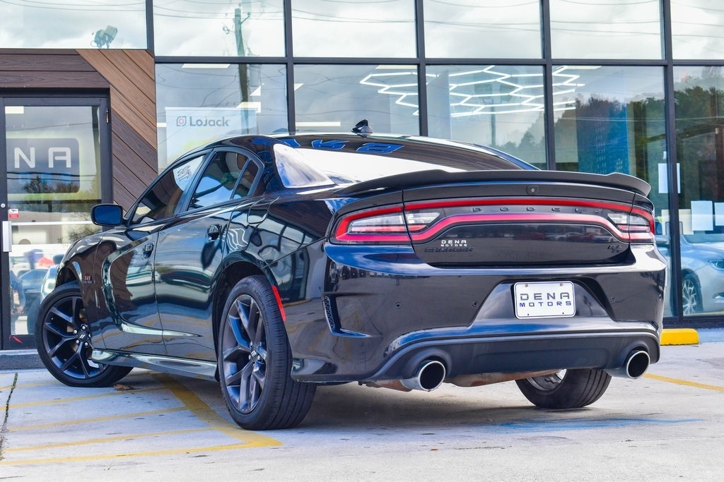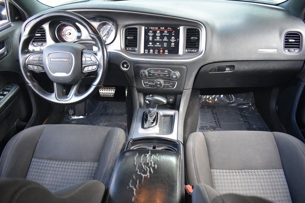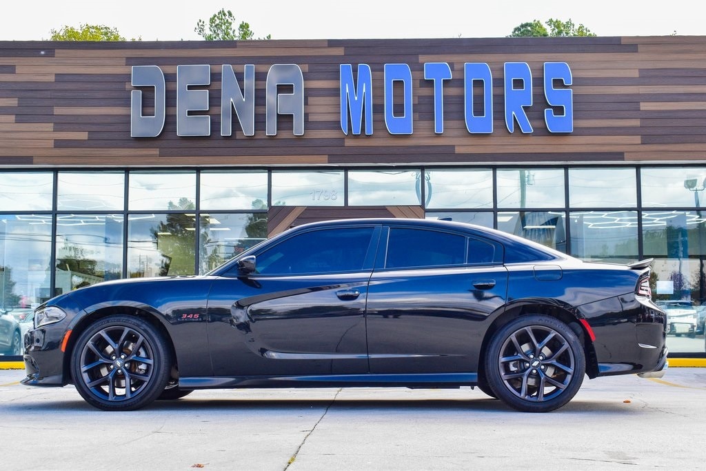 Pitch Black Clearcoat 2021 Dodge Charger R/T RWD 8-Speed Automatic HEMI 5.7L V8 Multi Displacement VVT Black Cloth, 4-Wheel Disc Brakes, 6 Speakers, ABS brakes, Air Conditioning, Alloy wheels, AM/FM radio: SiriusXM, Anti-whiplash front head restraints, Apple CarPlay/Android Auto, Auto-dimming Rear-View mirror, Automatic temperature control, Black 1-Piece Performance Spoiler, Black Dodge Grille Badge, Blacktop Package, Blacktop R/T Badge, Brake assist, Bumpers: body-color, Cloth Performance Seats, Compass, Delay-off headlights, Driver door bin, Driver vanity mirror, Dual front impact airbags, Dual front side impact airbags, Electronic Stability Control, Emergency communication system: SiriusXM Guardian, Four wheel independent suspension, Front anti-roll bar, Front Bucket Seats, Front Center Armrest, Front dual zone A/C, Front fog lights, Front reading lights, Fully automatic headlights, Garage door transmitter: HomeLink, Gloss Black I/P Cluster Trim Rings, Heated door mirrors, HEMI Blacktop Fender Badge, Illuminated entry, Knee airbag, Leather Shift Knob, Low tire pressure warning, Occupant sensing airbag, Outside temperature display, Overhead airbag, Overhead console, Panic alarm, ParkView Rear Back-Up Camera, Passenger door bin, Passenger vanity mirror, Power door mirrors, Power driver seat, Power steering, Power windows, Quick Order Package 29N, Radio data system, Radio: Uconnect 4C w/8.4" Display, Rear anti-roll bar, Rear reading lights, Rear seat center armrest, Rear window defroster, Remote keyless entry, Satin Black Charger Decklid Badge, Satin Black Dodge Tail Lamp Badge, Speed control, Split folding rear seat, Spoiler, Sport steering wheel, Steering wheel mounted audio controls, Tachometer, Telescoping steering wheel, Tilt steering wheel, Traction control, Trip computer, Wheels: 20" x 8.0" Black Noise Painted.