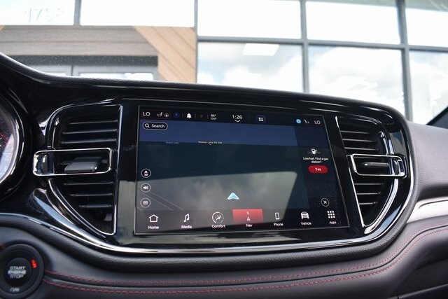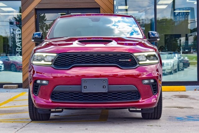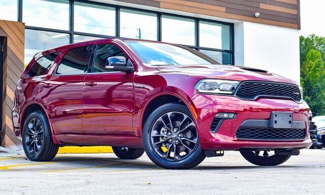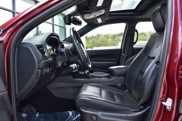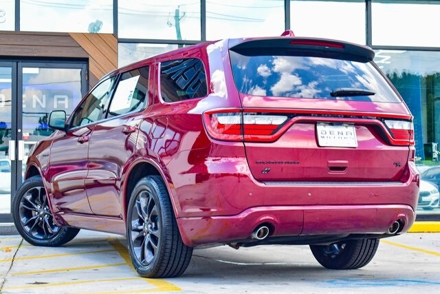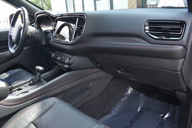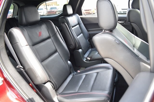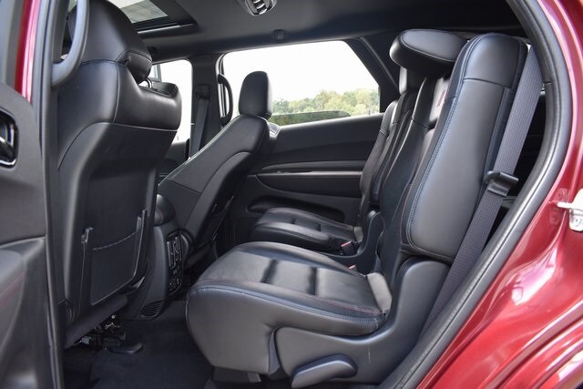 Octane Red Pearlcoat 2021 Dodge Durango R/T AWD 8-Speed Automatic HEMI 5.7L V8 Multi Displacement VVT AWD, 1 USB Charging Port in Console, 10.1" Touchscreen Display, 12V Auxiliary Power Outlet In Console, 2nd Row Console w/Armrest & Storage, 2nd Row Fold/Tumble Captain Chairs, 2nd Row Mini Console w/Cupholders, 2nd Row Seat Mounted Inboard Armrests, 3.09 Rear Axle Ratio, 3rd Row Floor Mat & Full Console, 3rd Row Floor Mat & Mini Console, 3rd row seats: split-bench, 4-Wheel Disc Brakes, 4G LTE Wi-Fi Hot Spot, 6-Passenger Seating, 9 Speakers, ABS brakes, Air Conditioning, Alloy wheels, AM/FM radio: SiriusXM w/360L, Anti-whiplash front head restraints, Apple CarPlay, Apple CarPlay/Android Auto, Auto High-beam Headlights, Auto-dimming door mirrors, Auto-dimming Rear-View mirror, Auto-leveling suspension, Automatic temperature control, Blacktop Package, Brake assist, Bumpers: body-color, Compass, Connected Travel & Traffic Services, Delay-off headlights, Disassociated Touchscreen Display, Driver door bin, Driver vanity mirror, Dual front impact airbags, Dual front side impact airbags, Electronic Stability Control, Emergency communication system: SiriusXM Guardian, Four wheel independent suspension, Front anti-roll bar, Front Bucket Seats, Front Center Armrest w/Storage, Front dual zone A/C, Front fog lights, Front License Plate Bracket, Front reading lights, Fully automatic headlights, Garage door transmitter, Global Telematics Box Module (TBM), Gloss Black Badges, Gloss Black Exterior Mirrors, Google Android Auto, GPS Antenna Input, GPS Navigation, HD Radio, Heated door mirrors, Heated front seats, Heated rear seats, Heated steering wheel, Heavy-Duty Engine Cooling, Hemi Badge, Illuminated entry, Illuminated Rear Cupholders, Integrated Center Stack Radio, Integrated Voice Command w/Bluetooth, Knee airbag, Leather steering wheel, Leather Suede Bucket Seats, Low tire pressure warning, Memory seat, Navigation system: TomTom, Occupant sensing airbag, Outside temperature display, Overhead airbag, Overhead console, Panic alarm, ParkView Rear Back-Up Camera, Passenger door bin, Passenger vanity mirror, Power door mirrors, Power driver seat, Power passenger seat, Power steering, Power windows, Quick Order Package 22S, Radar Red Interior Accent Stitch, Radio: Uconnect 5 Nav w/10.1" Display, Rain sensing wipers, Rear air conditioning, Rear anti-roll bar, Rear Load Leveling Suspension, Rear reading lights, Rear seat center armrest, Rear window defroster, Rear window wiper, Remote keyless entry, Satin Black Dodge Tail Lamp Badge, Security system, SiriusXM Guardian - Included Trial (B), SiriusXM Satellite Radio, SiriusXM w/360L, Speed control, Speed-sensing steering, Speed-Sensitive Wipers, Split folding rear seat, Spoiler, Steering wheel mounted audio controls, Tachometer, Telescoping steering wheel, Tilt steering wheel, Traction control, Trip computer, Turn signal indicator mirrors, USB Host Flip, Variably intermittent wipers, Voltmeter, Wheels: 20" x 8.0" Black Noise Aluminum.