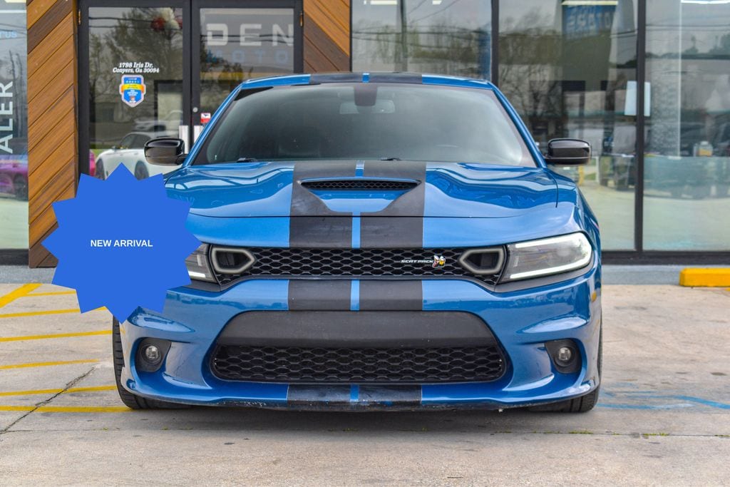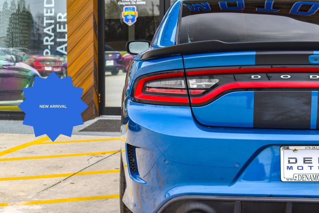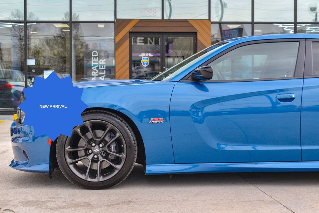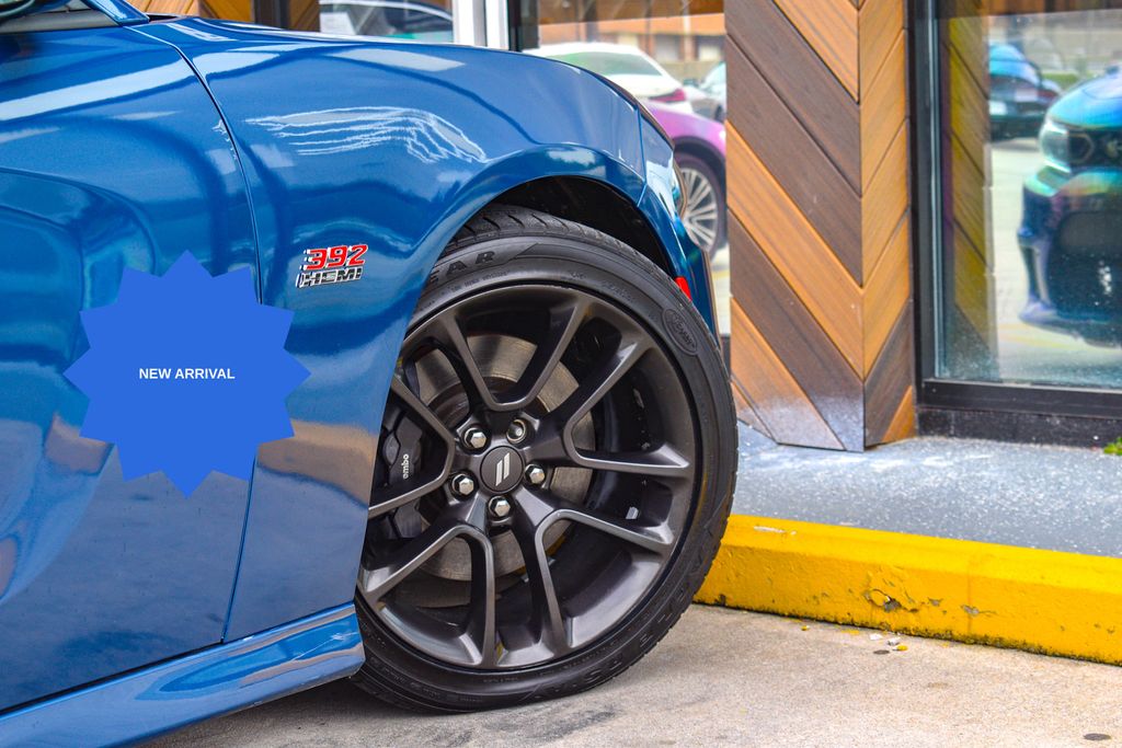 This vehicle comes equipped with Plus Group (Auto Adjust In Reverse Exterior Mirrors, Auto-Dimming Exterior Driver Mirror, Black-Edged Premium Floormats, Blind Spot & Cross Path Detection, Blind Spot Memory/Power/Heat Mirror, Driver & Passenger Lower LED Lamps, Exterior Mirrors Courtesy Lamps, Exterior Mirrors w/Heating Element, Front Overhead LED Lighting, Heated Front Seats, Power 2-Way Driver Lumbar Adjust, Power 2-Way Passenger Lumbar Adjust, Power Front Driver/Passenger Seats, Power Tilt/Telescope Steering Column, Premium-Stitched Dash Panel, Radio/Driver Seat/Mirrors Memory, Rear Armrest w/Cupholder Seat, Scat Pack Logo Nappa/Alcantara Seat, and Ventilated Front Seats), Quick Order Package 21W Scat Pack, Black Artificial Leather, 1-Yr SiriusXM Guardian Trial, 2-Piece Shark Fin Antenna, 4-Wheel Disc Brakes, 4G LTE Wi-Fi Hot Spot, 6 Speakers, 8.4" Touchscreen Display, ABS brakes, Air Conditioning, Alloy wheels, AM/FM radio: SiriusXM, Anti-whiplash front head restraints, Apple CarPlay, Apple CarPlay/Android Auto, Auto-dimming Rear-View mirror, Automatic temperature control, Brake assist, Bumpers: body-color, Cloth Performance Seats w/Heat, Compass, Delay-off headlights, Driver door bin, Driver vanity mirror, Dual front impact airbags, Dual front side impact airbags, Electronic Stability Control, Emergency communication system: SiriusXM Guardian, For Details, Visit DriveUconnect.com, Four wheel independent suspension, Front anti-roll bar, Front Bucket Seats, Front Center Armrest, Front dual zone A/C, Front fog lights, Front reading lights, Fully automatic headlights, Garage door transmitter: HomeLink, Google Android Auto, GPS Antenna Input, HD Radio, Heated door mirrors, Heated front seats, Heated steering wheel, Illuminated entry, Integrated Center Stack Radio, Integrated Voice Command w/Bluetooth, Knee airbag, Leather Shift Knob, Low tire pressure warning, Manufacturer's Statement of Origin, Media Hub (2 USB, AUX), Occupant sensing airbag, Outside temperature display, Overhead airbag, Overhead console, Panic alarm, ParkView Rear Back-Up Camera, Passenger door bin, Passenger vanity mirror, Power door mirrors, Power driver seat, Power steering, Power Sunroof, Power windows, Radio: Uconnect 4C w/8.4" Display, Rear anti-roll bar, Rear reading lights, Rear seat center armrest, Rear window defroster, Remote keyless entry, Security system, Speed control, Speed-Sensitive Wipers, Split folding rear seat, Spoiler, Sport steering wheel, Steering wheel mounted audio controls, Tachometer, Telescoping steering wheel, Tilt steering wheel, Traction control, Trip computer, USB Host Flip, Variably intermittent wipers, and Wheels: 20" x 9" Lo Gloss Granite Crystal .