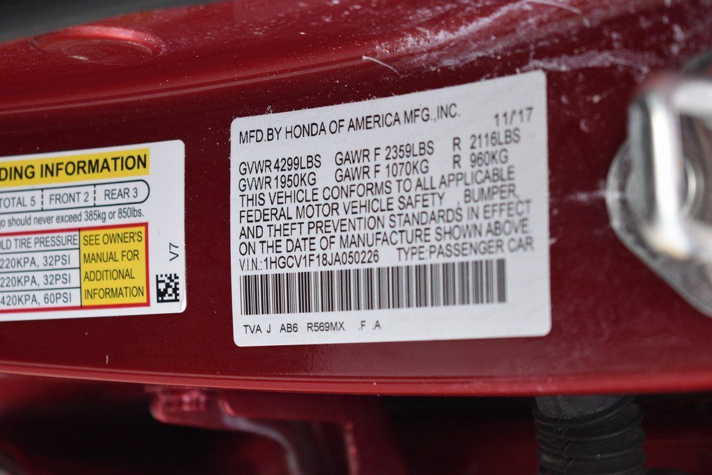 Red 2018 Honda Accord LX FWD CVT 1.5T I4 DOHC 16V Turbocharged VTEC Cloth.