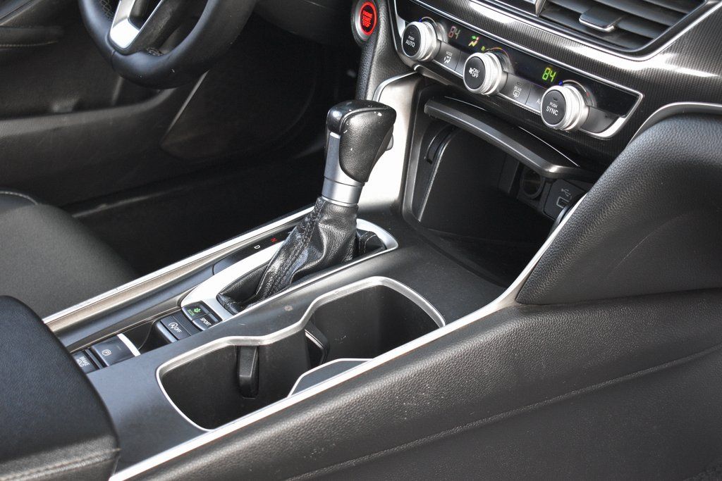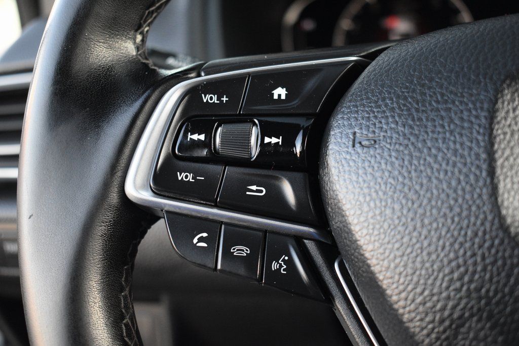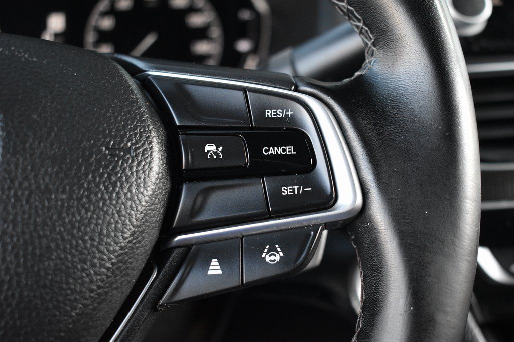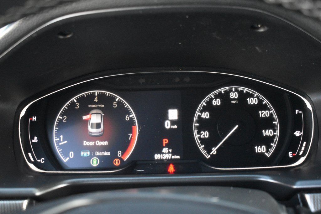 This vehicle comes equipped with Black Cloth, 4-Wheel Disc Brakes, 8 Speakers, ABS brakes, Adaptive Cruise Control: Adaptive Cruise Control (ACC) with Low-Speed Follow, Air Conditioning, Alloy wheels, AM/FM radio, Apple CarPlay/Android Auto, Auto High-beam Headlights, Automatic temperature control, Brake assist, Bumpers: body-color, Cloth Seat Trim, Delay-off headlights, Driver door bin, Driver vanity mirror, Dual front impact airbags, Dual front side impact airbags, Electronic Stability Control, Emergency communication system: HondaLink, Exterior Parking Camera Rear, Forward collision: Collision Mitigation Braking System (CMBS) + FCW mitigation, Four wheel independent suspension, Front anti-roll bar, Front Bucket Seats, Front Center Armrest, Front dual zone A/C, Front fog lights, Front reading lights, Fully automatic headlights, Illuminated entry, Knee airbag, Lane Departure Warning System, Leather Shift Knob, Leather steering wheel, Low tire pressure warning, Occupant sensing airbag, Outside temperature display, Overhead airbag, Overhead console, Panic alarm, Passenger door bin, Passenger vanity mirror, Power door mirrors, Power driver seat, Power steering, Power windows, Radio data system, Radio: 180-Watt AM/FM Audio System, Rear anti-roll bar, Rear seat center armrest, Rear window defroster, Remote keyless entry, Security system, Speed control, Speed-sensing steering, Speed-Sensitive Wipers, Split folding rear seat, Spoiler, Steering wheel mounted audio controls, Tachometer, Telescoping steering wheel, Tilt steering wheel, Traction control, Trip computer, Variably intermittent wipers, and Wheels: 19" Machine-Finished Alloy w/Black Inserts .