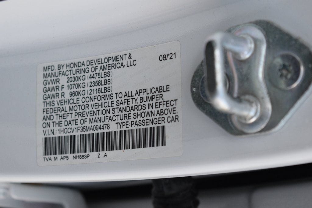 White 2021 Honda Accord Sport FWD CVT 1.5T I4 DOHC 16V Turbocharged VTEC Black Cloth.
