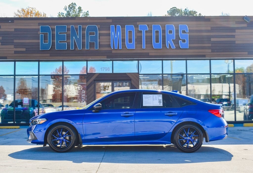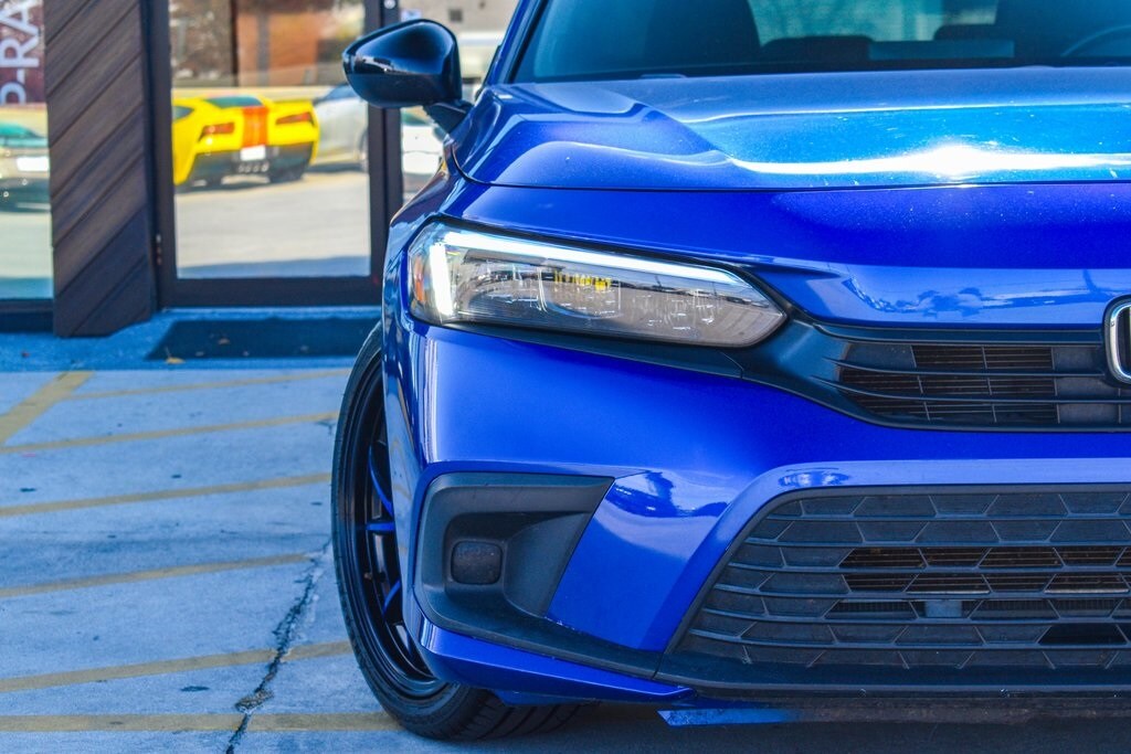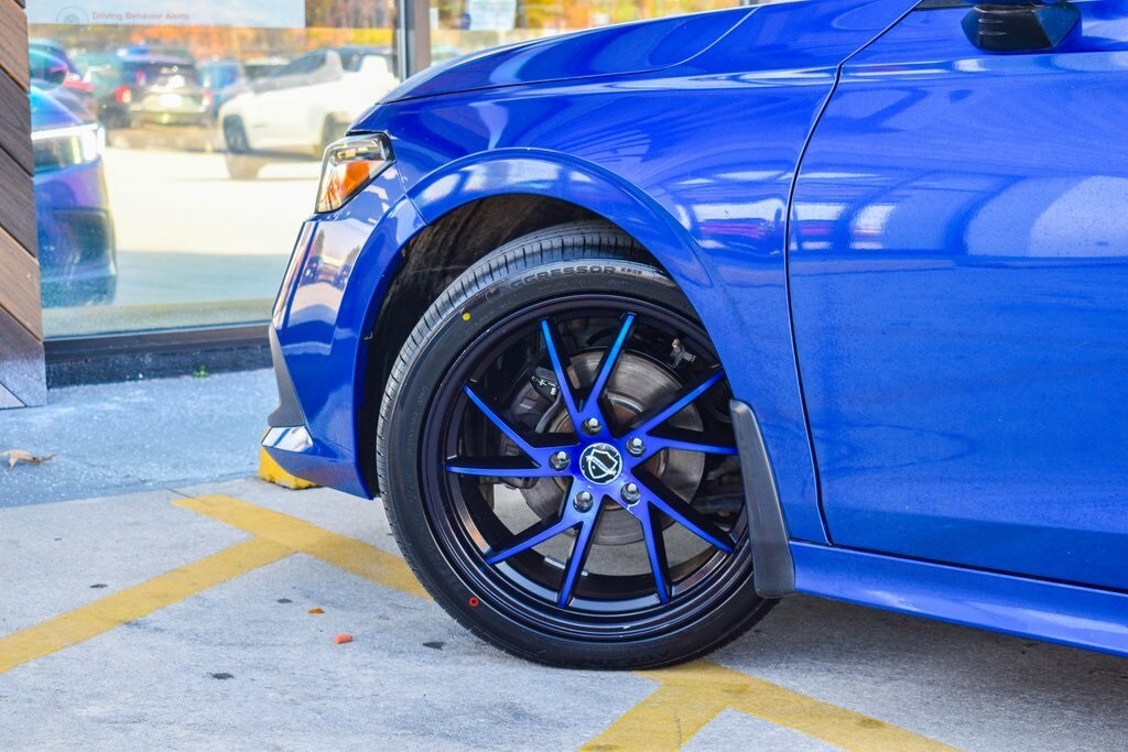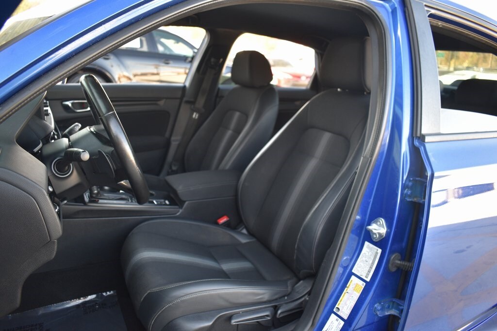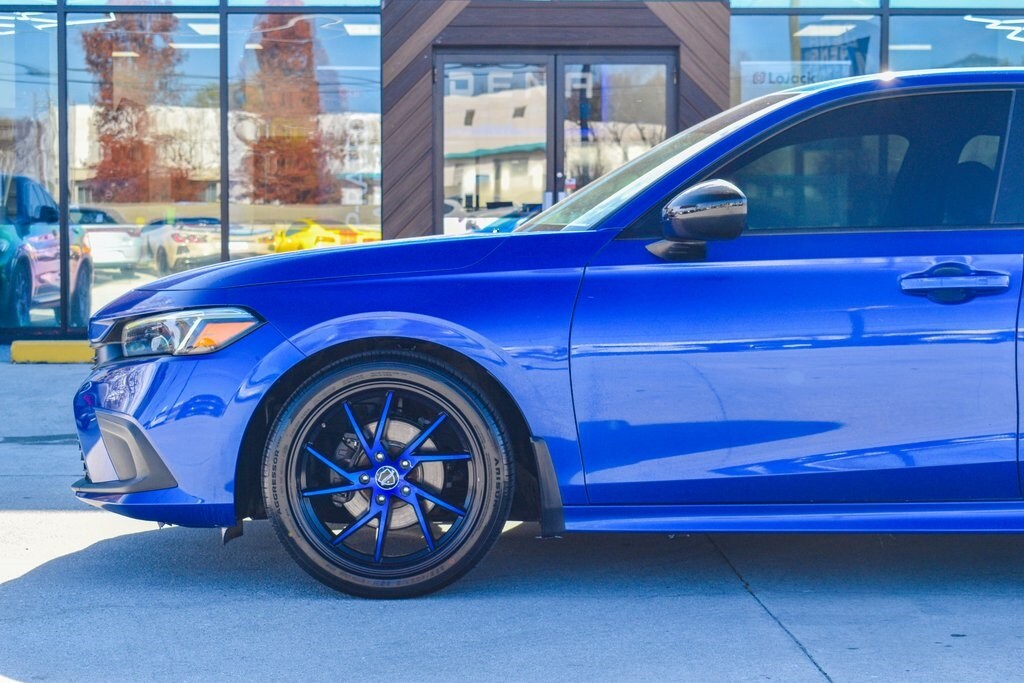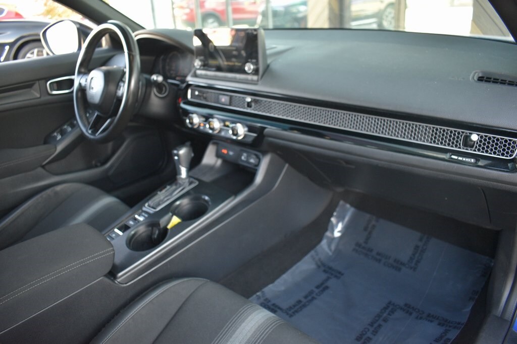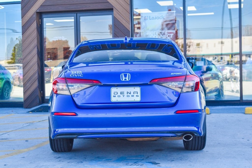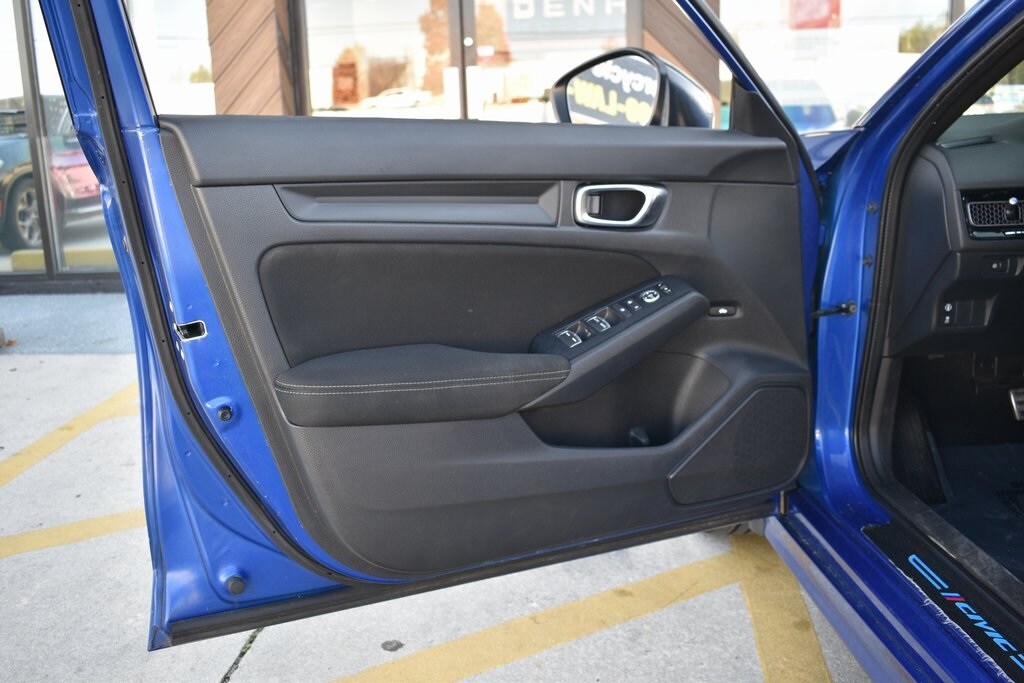 Blue 2022 Honda Civic Sport FWD CVT 2.0L I4 DOHC 16V i-VTEC Black Cloth, 4-Wheel Disc Brakes, 8 Speakers, ABS brakes, Adaptive Cruise Control: Adaptive Cruise Control (ACC) with Low-Speed Follow, Air Conditioning, Alloy wheels, AM/FM radio, Apple CarPlay/Android Auto, Auto High-beam Headlights, Automatic temperature control, Brake assist, Bumpers: body-color, Cloth Seat Trim, Driver door bin, Driver vanity mirror, Electronic Stability Control, Emergency communication system: HondaLink, Exterior Parking Camera Rear, Forward collision: Collision Mitigation Braking System (CMBS) + FCW mitigation, Front reading lights, Fully automatic headlights, Illuminated entry, Leather Shift Knob, Passenger door bin, Power door mirrors, Power steering, Power windows, Radio data system, Radio: 180-Watt AM/FM Audio System, Rear side impact airbag, Rear window defroster, Remote keyless entry, Speed control, Steering wheel mounted audio controls, Wheels: 18" Gloss Black Alloy.