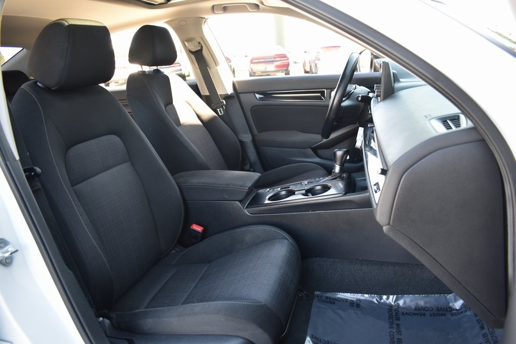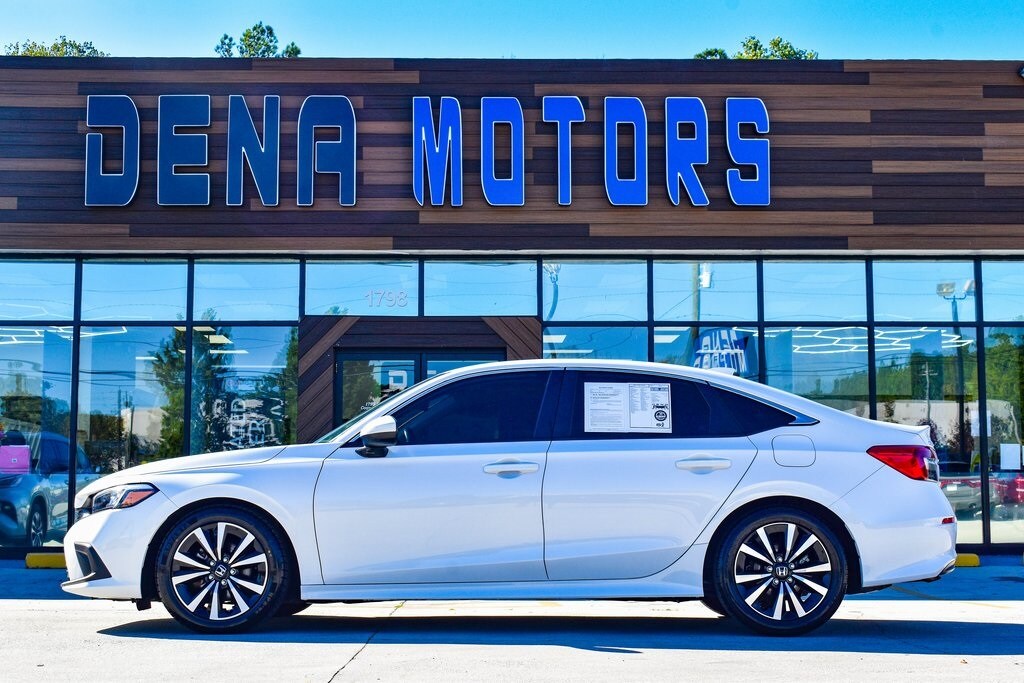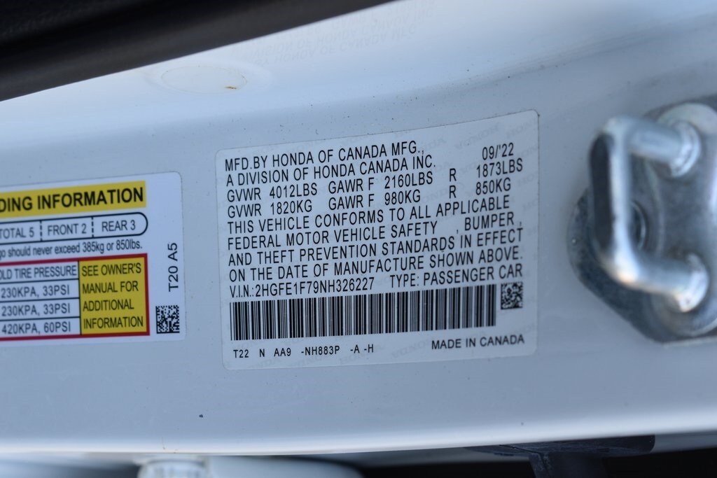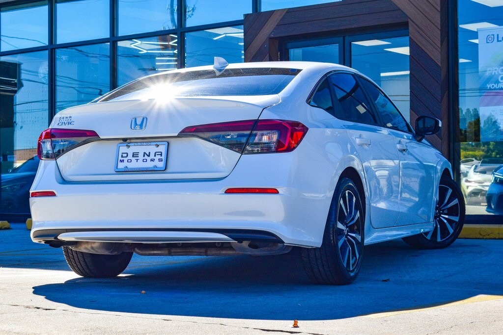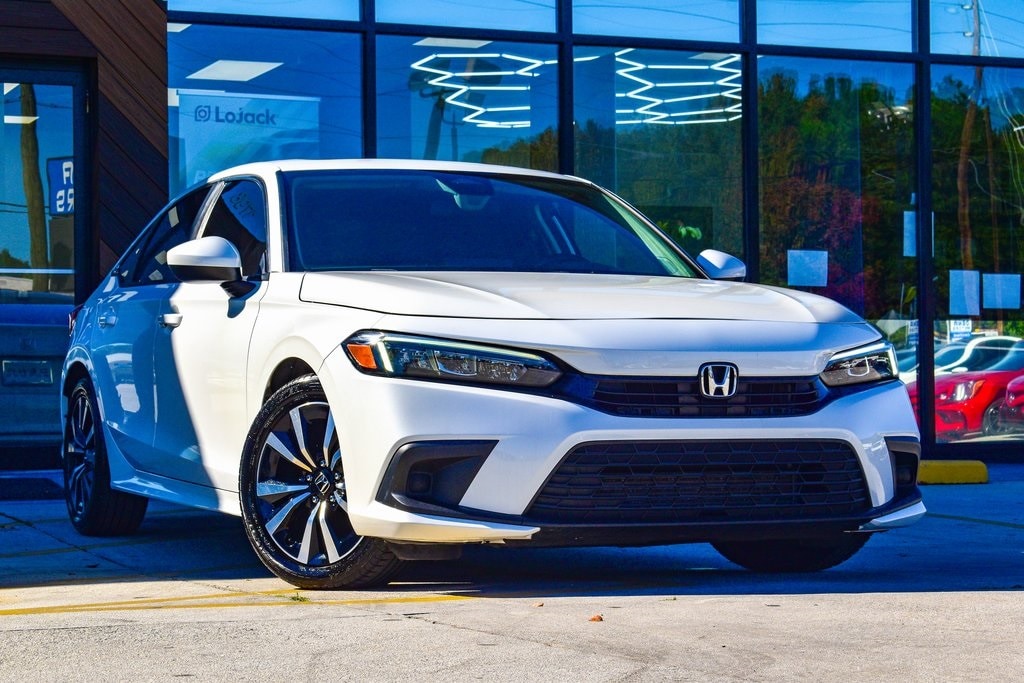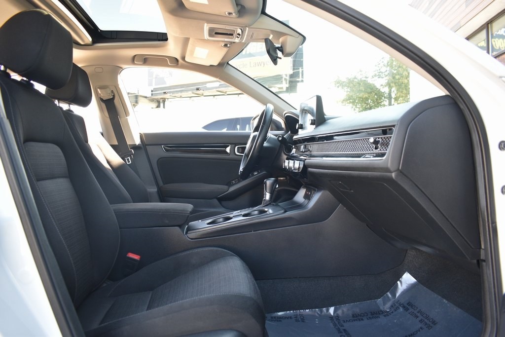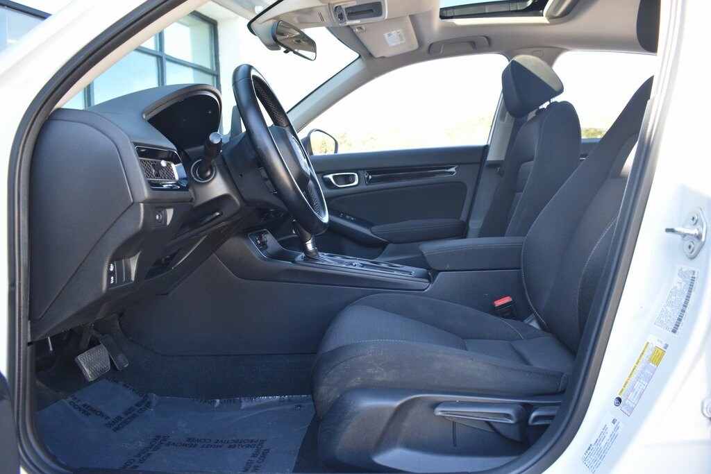 White 2022 Honda Civic EX FWD CVT 1.5L I-4 DI DOHC Turbocharged Cloth, 4-Wheel Disc Brakes, 8 Speakers, ABS brakes, Adaptive Cruise Control: Adaptive Cruise Control (ACC) with Low-Speed Follow, Air Conditioning, Alloy wheels, AM/FM radio, Apple CarPlay/Android Auto, Auto High-beam Headlights, Automatic temperature control, Blind Spot Information (BSI) System warning, Brake assist, Bumpers: body-color, Cloth Seat Trim, Delay-off headlights, Driver door bin, Driver vanity mirror, Dual front impact airbags, Dual front side impact airbags, Electronic Stability Control, Emergency communication system: HondaLink, Exterior Parking Camera Rear, Forward collision: Collision Mitigation Braking System (CMBS) + FCW mitigation, Four wheel independent suspension, Front anti-roll bar, Front Bucket Seats, Front Center Armrest, Front dual zone A/C, Front reading lights, Fully automatic headlights, Heated door mirrors, Heated Front Bucket Seats, Heated front seats, Illuminated entry, Knee airbag, Leather Shift Knob, Leather steering wheel, Low tire pressure warning, Occupant sensing airbag, Outside temperature display, Overhead airbag, Overhead console, Panic alarm, Passenger door bin, Passenger vanity mirror, Power door mirrors, Power moonroof, Power steering, Power windows, Radio data system, Radio: 180-Watt AM/FM Audio System, Rear anti-roll bar, Rear seat center armrest, Rear side impact airbag, Rear window defroster, Remote keyless entry, Security system, Speed control, Speed-sensing steering, Split folding rear seat, Steering wheel mounted audio controls, Tachometer, Telescoping steering wheel, Tilt steering wheel, Traction control, Trip computer, Variably intermittent wipers, Wheels: 17" Alloy w/Gloss Black Inserts.
