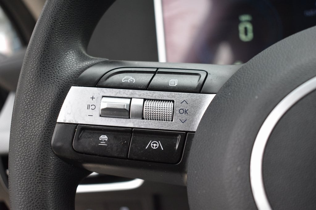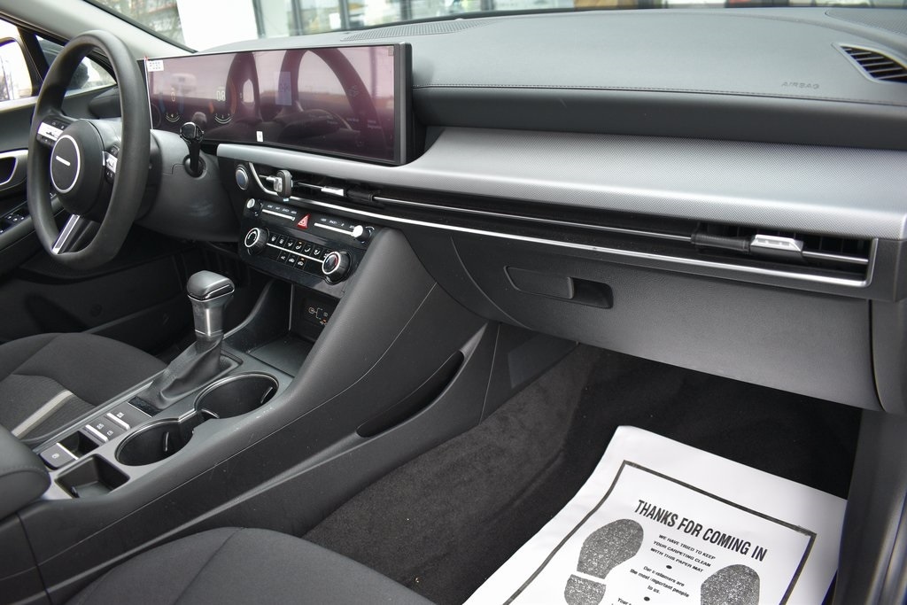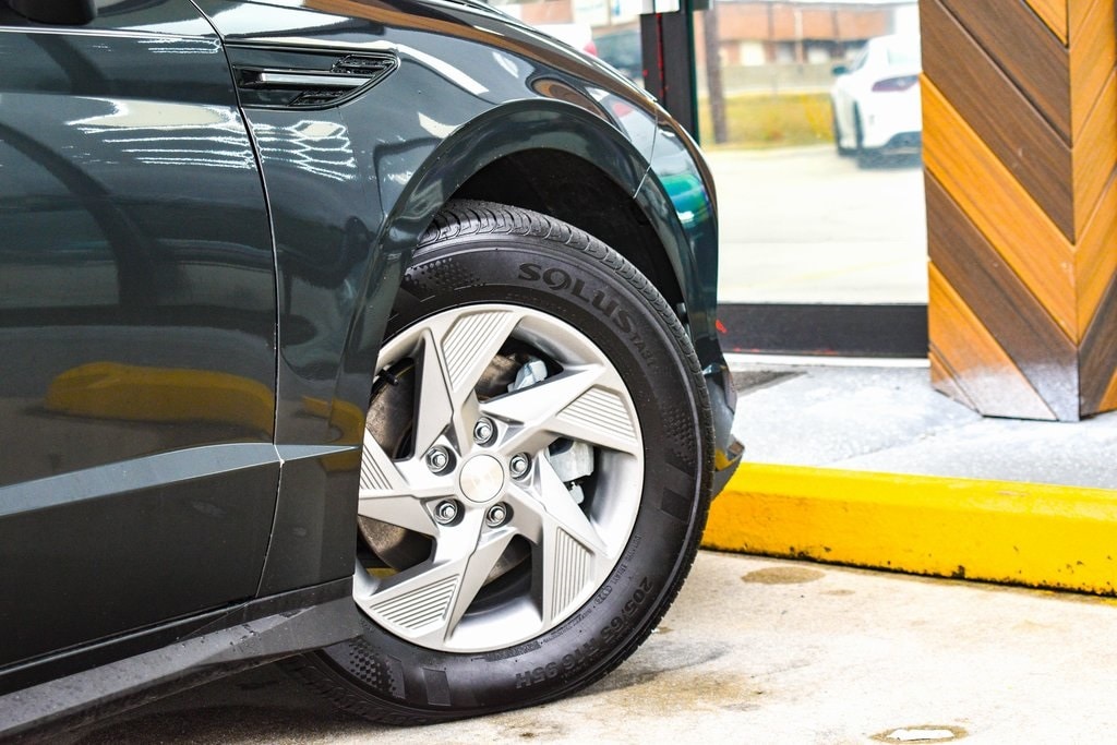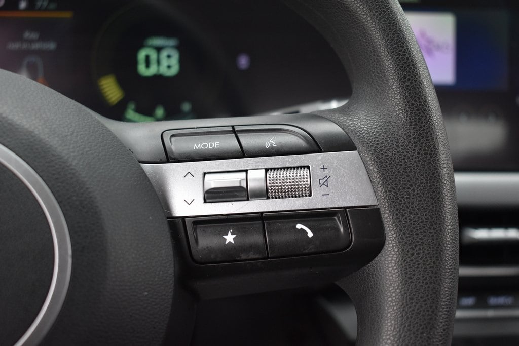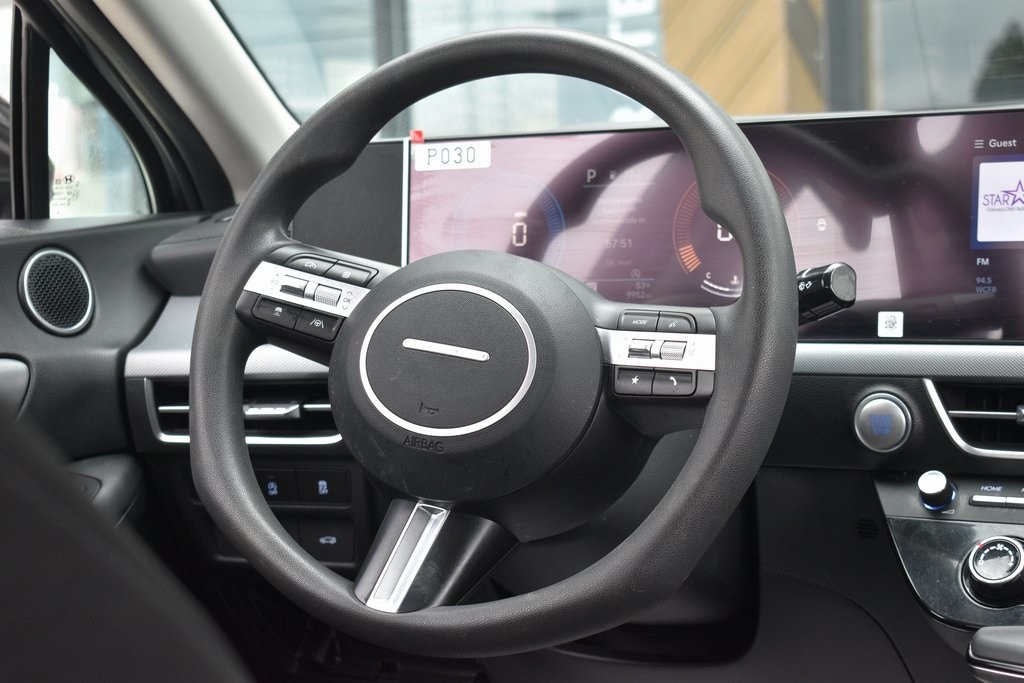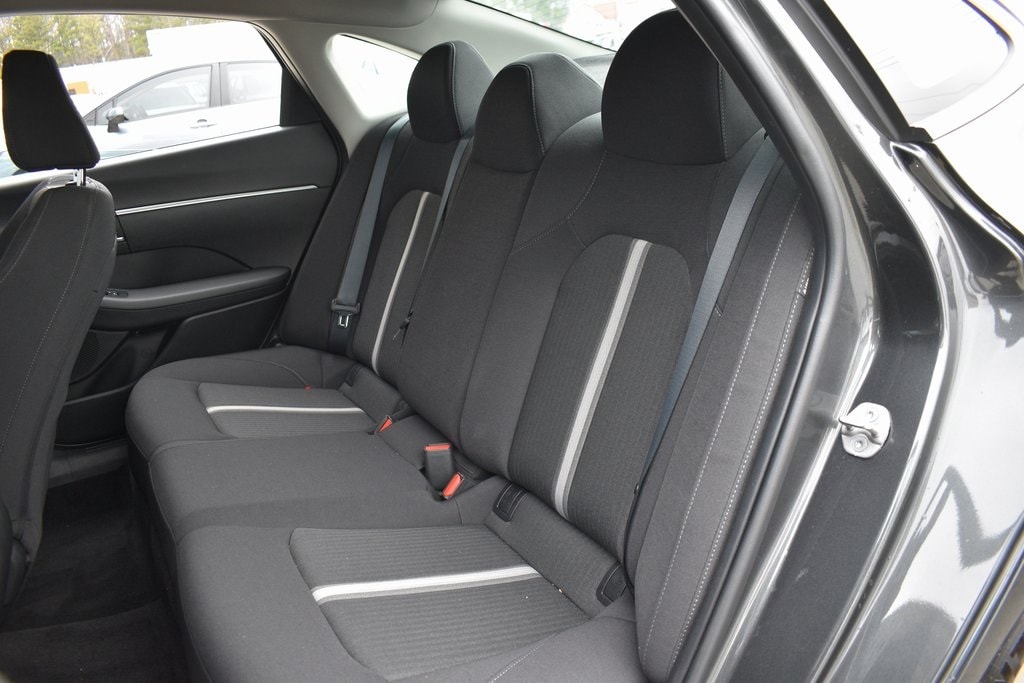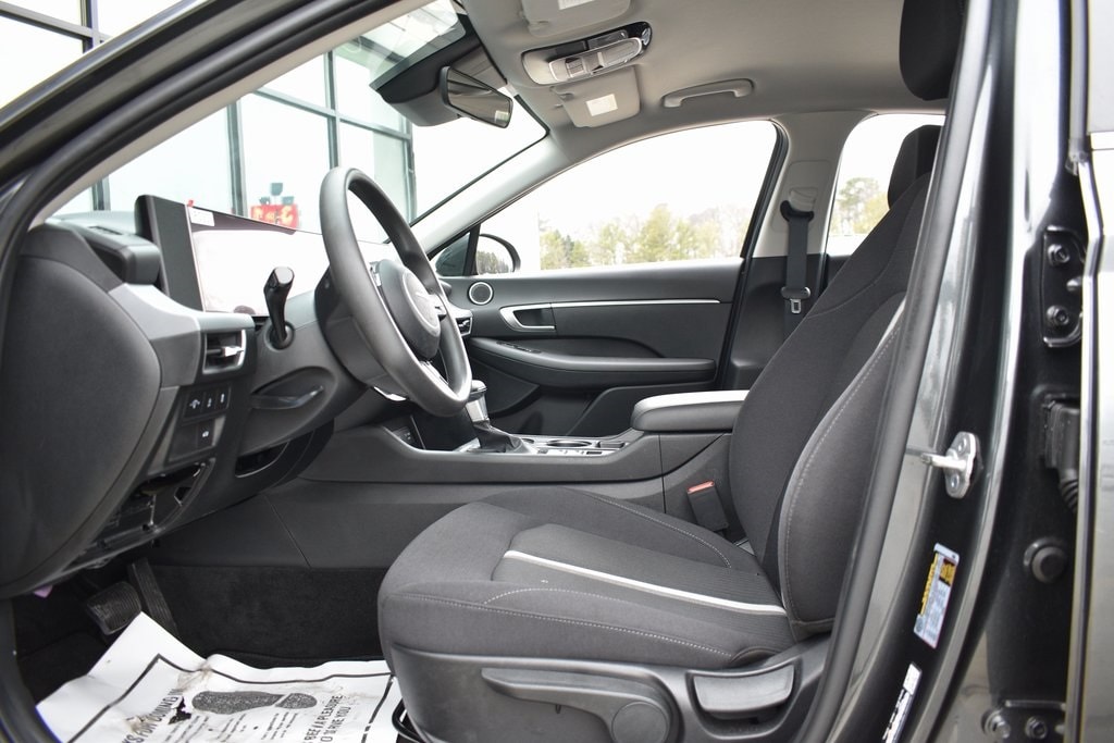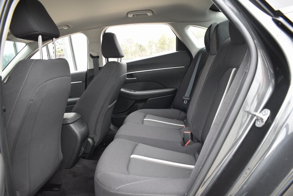 This vehicle comes equipped with Option Group 01, Black Cloth, 16" x 6.5J Aluminum Alloy Wheels, 4-Wheel Disc Brakes, 6 Speakers, ABS brakes, Air Conditioning, Alloy wheels, AM/FM radio: SiriusXM, Apple CarPlay & Android Auto, Auto High-beam Headlights, Booster Cables, Brake assist, Bumpers: body-color, Cargo Block, Cargo Net, Cargo Tray, Carpeted Floor Mats, Cloth Seating Surfaces, Delay-off headlights, Driver door bin, Driver vanity mirror, Dual front impact airbags, Dual front side impact airbags, Electronic Stability Control, Emergency communication system: Bluelink+, Exterior Parking Camera Rear, First Aid Kit, First Aid Supplies, Flashlight, Four wheel independent suspension, Front anti-roll bar, Front Bucket Seats, Front Center Armrest, Front reading lights, Fully automatic headlights, Illuminated entry, Knee airbag, Low tire pressure warning, Occupant sensing airbag, Outside temperature display, Overhead airbag, Overhead console, Panic alarm, Passenger door bin, Passenger vanity mirror, Power door mirrors, Power steering, Power windows, Radio data system, Radio: AM/FM/HD/SiriusXM, Rear anti-roll bar, Rear Bumper Applique, Rear side impact airbag, Rear window defroster, Remote keyless entry, Security system, Speed control, Speed-sensing steering, Speed-Sensitive Wipers, Split folding rear seat, Steering wheel mounted audio controls, Tachometer, Telescoping steering wheel, Tilt steering wheel, Traction control, Trip computer, and Variably intermittent wipers .