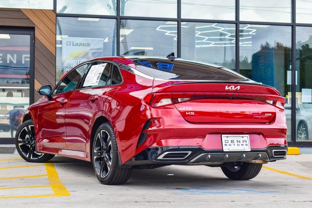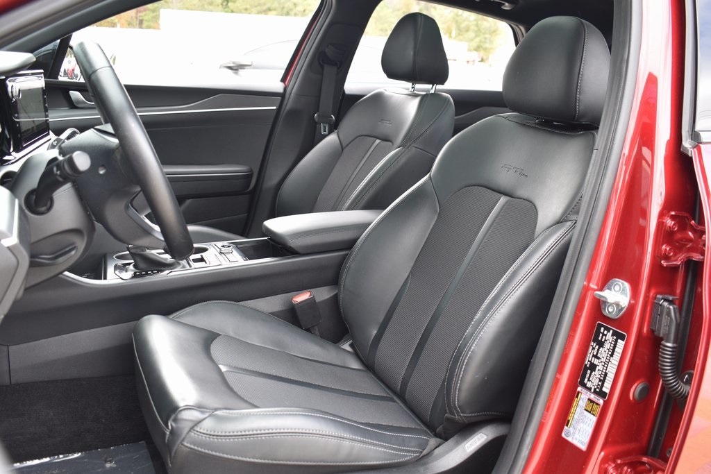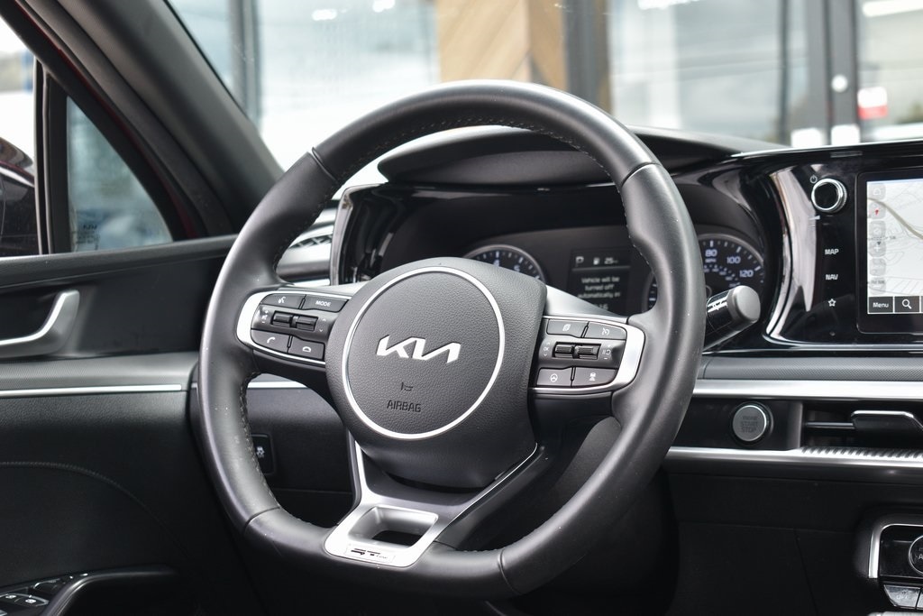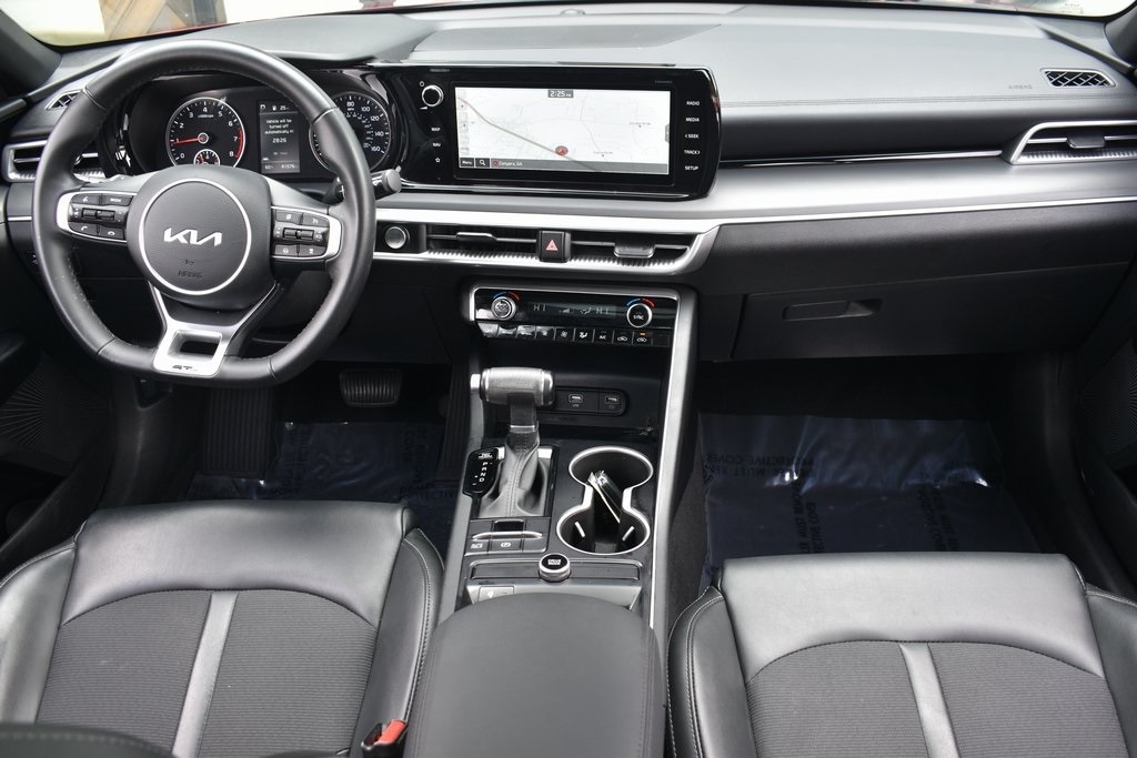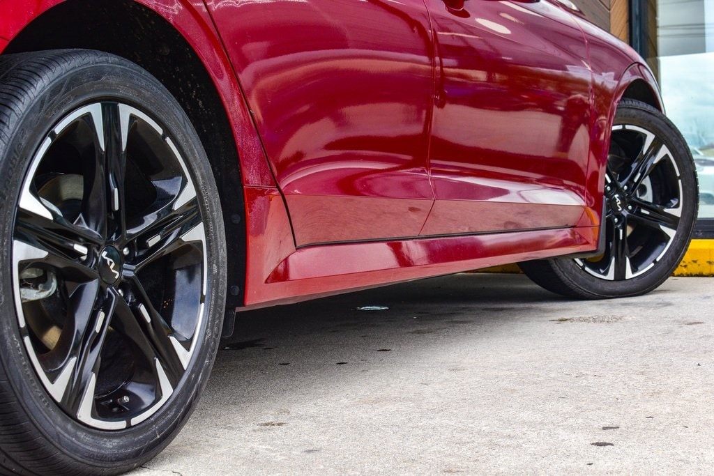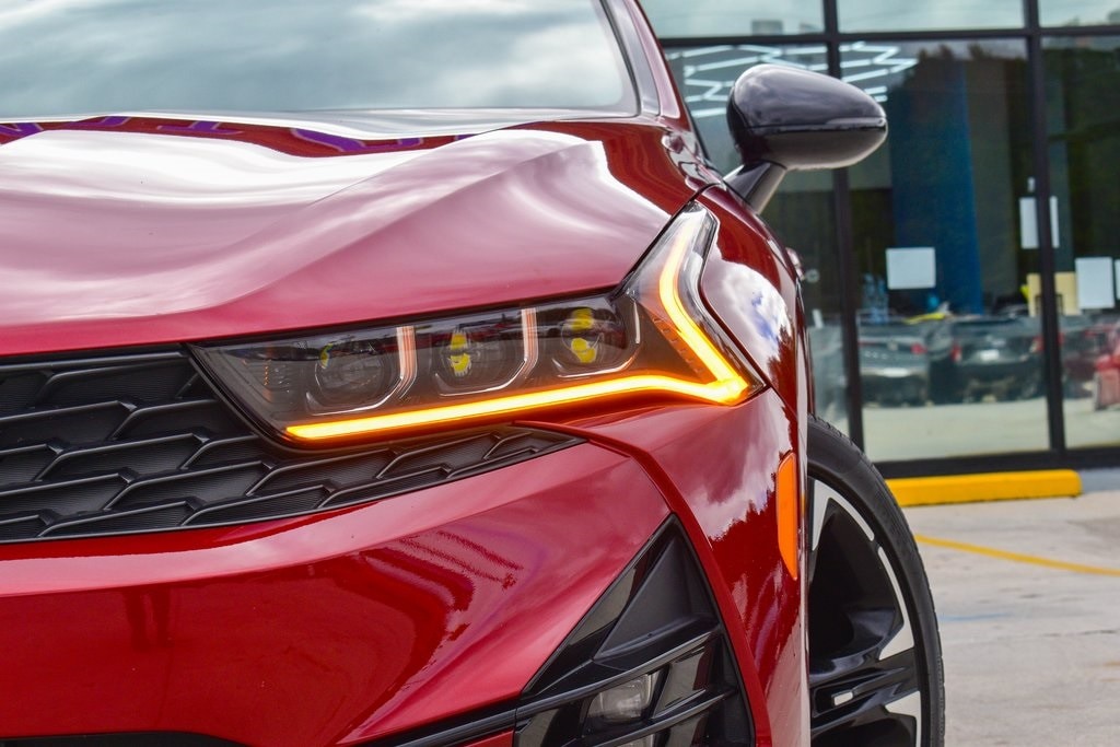 Passion Red 2023 Kia K5 GT-Line FWD 8-Speed Automatic 1.6L I4 DGI Turbocharged DOHC 16V LEV3-ULEV70 180hp 4-Wheel Disc Brakes, 6 Speakers, ABS brakes, Air Conditioning, Alloy wheels, AM/FM radio: SiriusXM, Apple CarPlay & Android Auto, Auto High-beam Headlights, Automatic temperature control, Brake assist, Bumpers: body-color, Carpeted Floor Mats, Cloth/SynTex Seat Trim, Delay-off headlights, Driver door bin, Driver vanity mirror, Dual front impact airbags, Dual front side impact airbags, EC Mirror w/Homelink, Electronic Stability Control, Forward Collision Avoidance-Assist, Four wheel independent suspension, Front anti-roll bar, Front Bucket Seats, Front Center Armrest, Front dual zone A/C, Front fog lights, Front reading lights, Fully automatic headlights, Gloss Black Trim, GT-Line Panoramic Sunroof Package, GT-Line Premium Package, Heated door mirrors, Highway Driving Assist, Illuminated entry, Knee airbag, LED Interior Lighting, LED Projection Headlamps, LED Trunk Light, Low tire pressure warning, Mud Guards, Navigation System, Occupant sensing airbag, Outside temperature display, Overhead airbag, Overhead console, Panic alarm, Panoramic Sunroof, Passenger door bin, Passenger vanity mirror, Power door mirrors, Power driver seat, Power steering, Power windows, Radio: AM/FM/MP3 Audio System, Rear anti-roll bar, Rear seat center armrest, Rear side impact airbag, Rear window defroster, Remote keyless entry, Security system, Smart Cruise Control w/Stop & Go, Speed control, Speed-sensing steering, Split folding rear seat, Spoiler, Sport steering wheel, Steering wheel mounted audio controls, Tachometer, Telescoping steering wheel, Tilt steering wheel, Traction control, Trip computer, Turn signal indicator mirrors, Wheels: 18" Gloss Black Machined Finish Alloy.