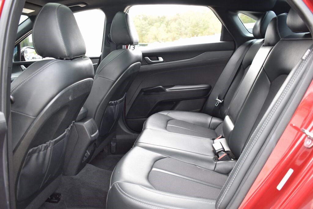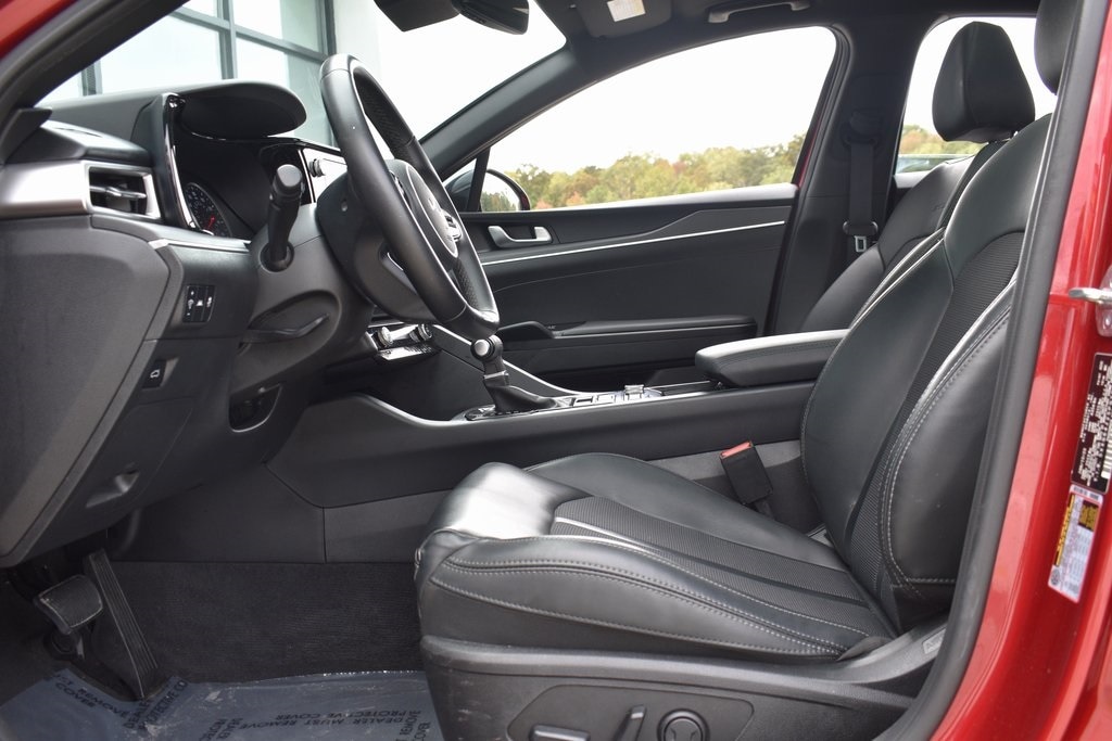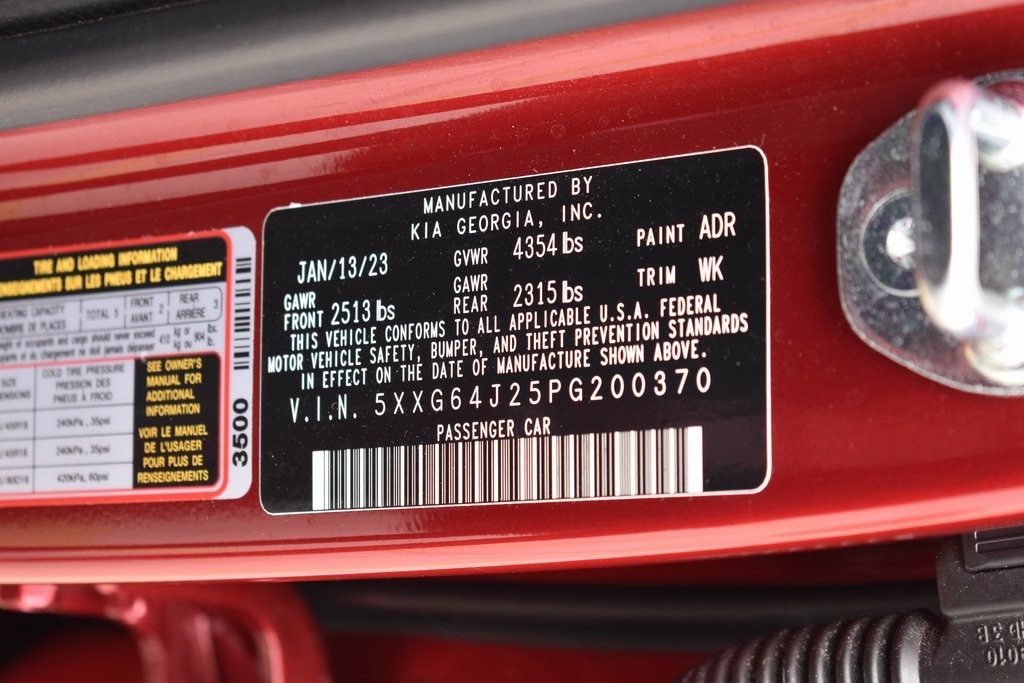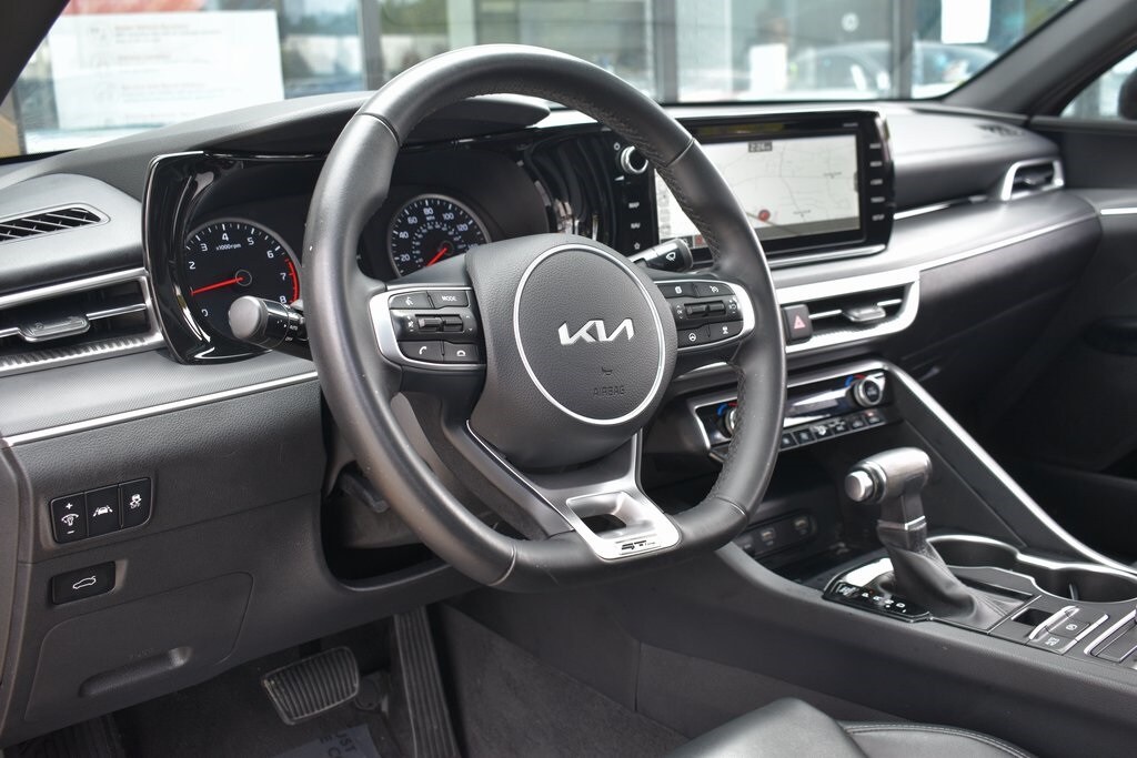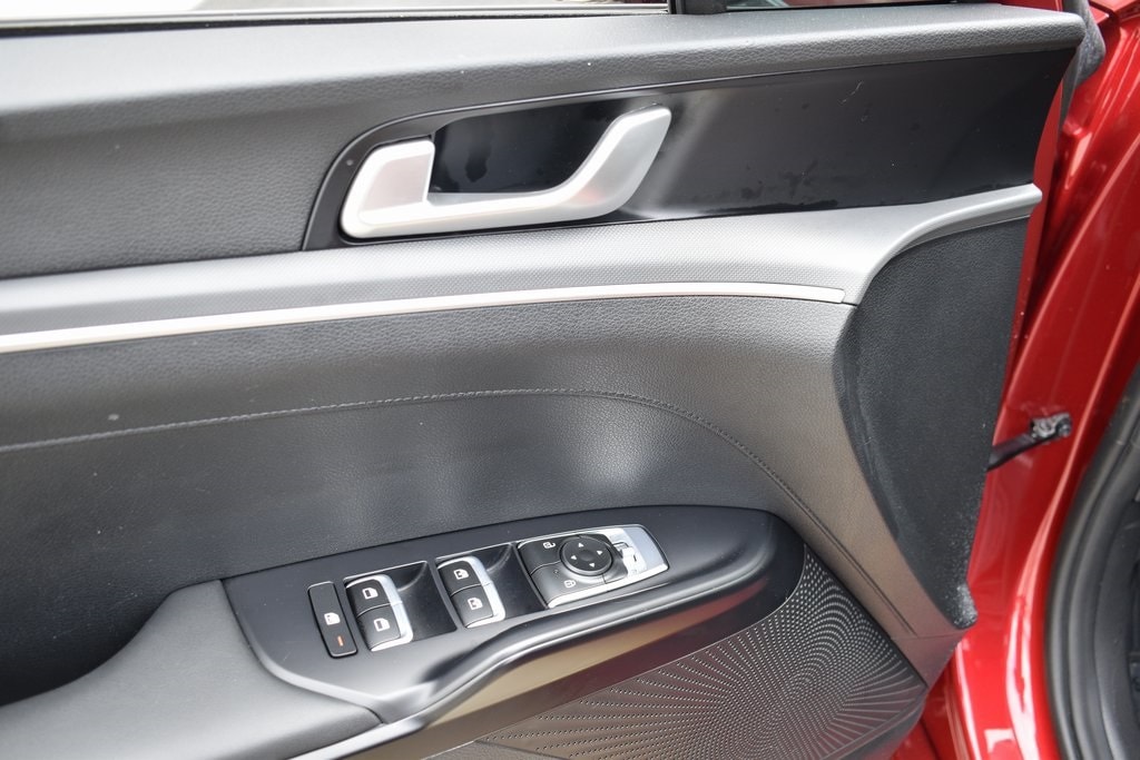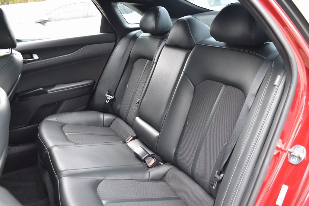 Passion Red 2023 Kia K5 GT-Line FWD 8-Speed Automatic 1.6L I4 DGI Turbocharged DOHC 16V LEV3-ULEV70 180hp 4-Wheel Disc Brakes, 6 Speakers, ABS brakes, Air Conditioning, Alloy wheels, AM/FM radio: SiriusXM, Apple CarPlay & Android Auto, Auto High-beam Headlights, Automatic temperature control, Brake assist, Bumpers: body-color, Carpeted Floor Mats, Cloth/SynTex Seat Trim, Delay-off headlights, Driver door bin, Driver vanity mirror, Dual front impact airbags, Dual front side impact airbags, EC Mirror w/Homelink, Electronic Stability Control, Forward Collision Avoidance-Assist, Four wheel independent suspension, Front anti-roll bar, Front Bucket Seats, Front Center Armrest, Front dual zone A/C, Front fog lights, Front reading lights, Fully automatic headlights, Gloss Black Trim, GT-Line Panoramic Sunroof Package, GT-Line Premium Package, Heated door mirrors, Highway Driving Assist, Illuminated entry, Knee airbag, LED Interior Lighting, LED Projection Headlamps, LED Trunk Light, Low tire pressure warning, Mud Guards, Navigation System, Occupant sensing airbag, Outside temperature display, Overhead airbag, Overhead console, Panic alarm, Panoramic Sunroof, Passenger door bin, Passenger vanity mirror, Power door mirrors, Power driver seat, Power steering, Power windows, Radio: AM/FM/MP3 Audio System, Rear anti-roll bar, Rear seat center armrest, Rear side impact airbag, Rear window defroster, Remote keyless entry, Security system, Smart Cruise Control w/Stop & Go, Speed control, Speed-sensing steering, Split folding rear seat, Spoiler, Sport steering wheel, Steering wheel mounted audio controls, Tachometer, Telescoping steering wheel, Tilt steering wheel, Traction control, Trip computer, Turn signal indicator mirrors, Wheels: 18" Gloss Black Machined Finish Alloy.