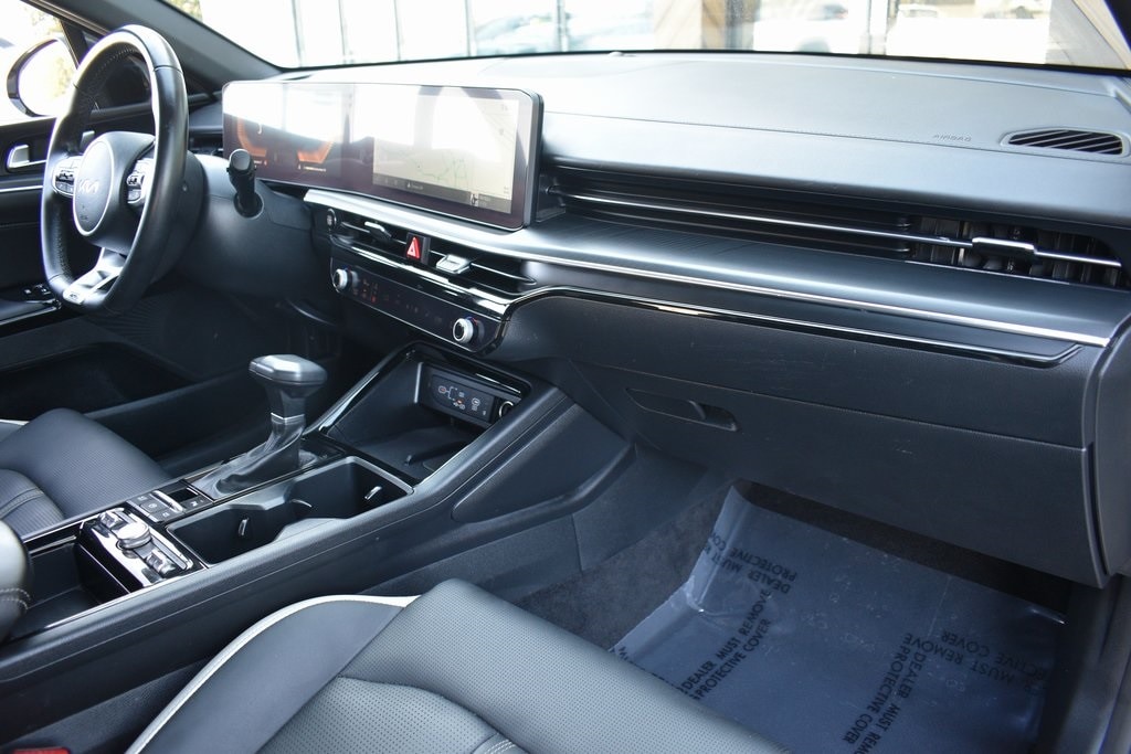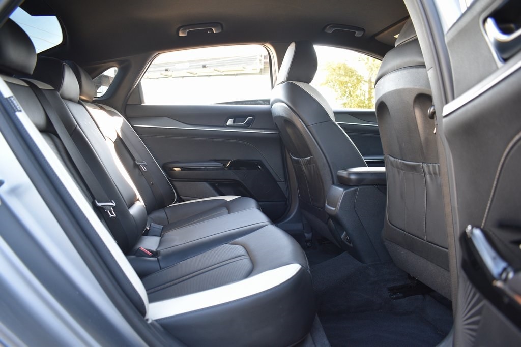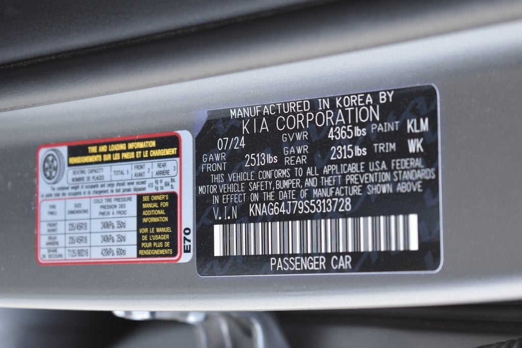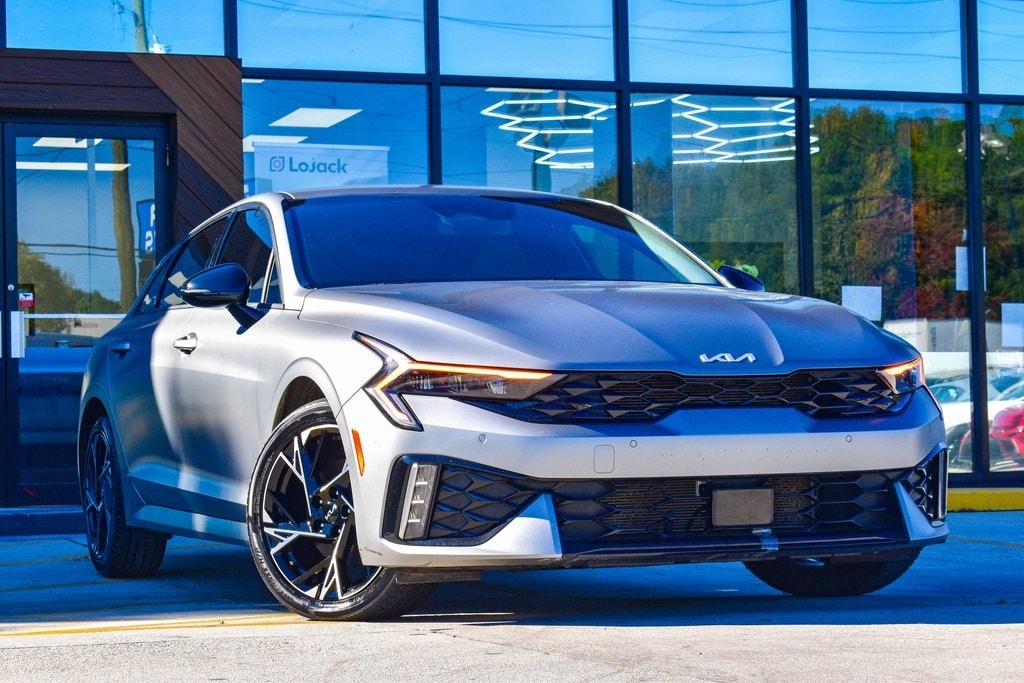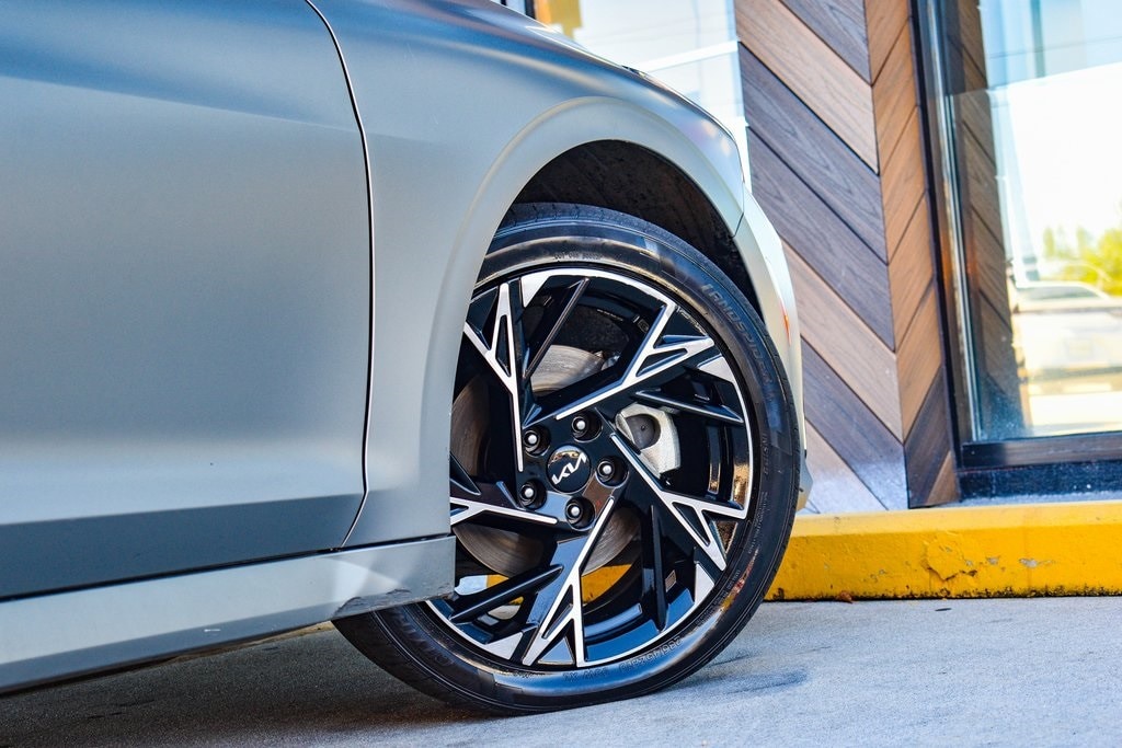 Steel Matte Gray 2025 Kia K5 GT-Line FWD 8-Speed Automatic I4 4-Wheel Disc Brakes, 6 Speakers, ABS brakes, Air Conditioning, Alloy wheels, AM/FM radio: SiriusXM, Auto High-beam Headlights, Automatic temperature control, Brake assist, Bumpers: body-color, Cargo Mat, Carpeted Floor Mats, Delay-off headlights, Driver door bin, Driver vanity mirror, Dual front impact airbags, Dual front side impact airbags, EC Mirror w/Homelink, Electronic Stability Control, Emergency communication system: Kia Connect (includes 1 year free trial), Four wheel independent suspension, Front anti-roll bar, Front Bucket Seats, Front Center Armrest, Front dual zone A/C, Front fog lights, Front reading lights, Fully automatic headlights, Heated door mirrors, Heated Front Bucket Seats, Heated front seats, Heated steering wheel, Illuminated entry, Knee airbag, Leather Shift Knob, Leather steering wheel, Low tire pressure warning, Navigation System, Occupant sensing airbag, Outside temperature display, Overhead airbag, Overhead console, Panic alarm, Passenger door bin, Passenger vanity mirror, Power door mirrors, Power driver seat, Power steering, Power windows, Radio data system, Radio: AM/FM Audio System, Rear anti-roll bar, Rear seat center armrest, Rear side impact airbag, Rear window defroster, Remote keyless entry, Security system, Speed control, Speed-sensing steering, Split folding rear seat, Sport steering wheel, Steering wheel mounted audio controls, Tachometer, Telescoping steering wheel, Tilt steering wheel, Traction control, Trip computer, Turn signal indicator mirrors, Variably intermittent wipers, Wheels: 18" x 7.5J Gloss Black Machined Finish Alloy.