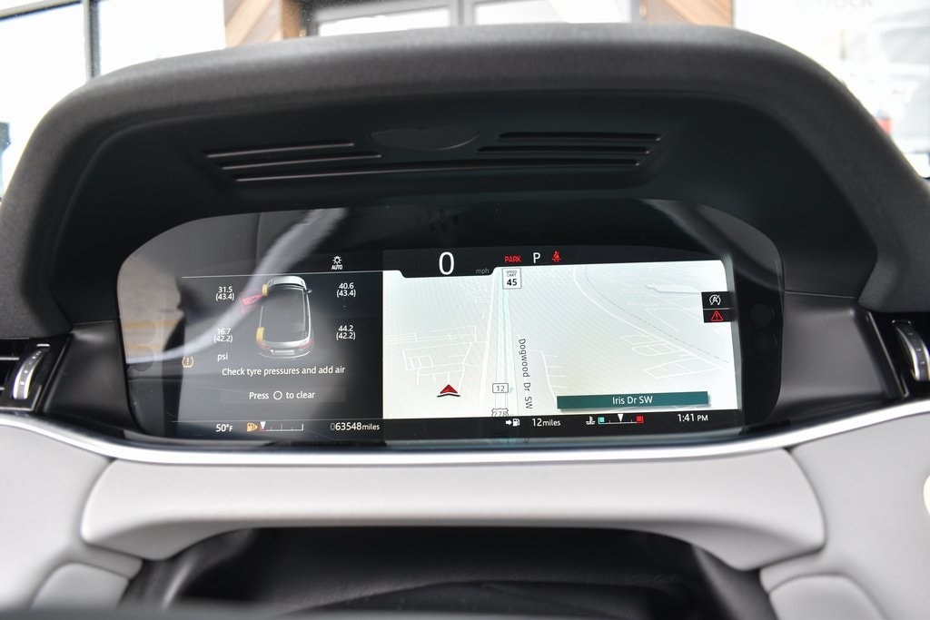 This vehicle comes equipped with 12-Way Front Bucket Seats w/Driver's Seat Memory, 180 Watt Range Rover Sound System w/6-Speakers, 20" Wheels, 4-Wheel Disc Brakes, 4.54 Axle Ratio, 6 Speakers, ABS brakes, Air Conditioning, Alloy wheels, AM/FM radio: SiriusXM, Android Auto, Apple CarPlay, Apple CarPlay & Android Auto, Auto High-beam Headlights, Auto-dimming door mirrors, Auto-dimming Rear-View mirror, Automatic temperature control, Brake assist, Bumpers: body-color, Compass, Delay-off headlights, Driver door bin, Driver vanity mirror, Dual front impact airbags, Dual front side impact airbags, Electronic Stability Control, Emergency communication system: InControl Protect, Four wheel independent suspension, Front anti-roll bar, Front Bucket Seats, Front Center Armrest, Front dual zone A/C, Front reading lights, Fully automatic headlights, Grained Leather Seat Trim, Heated door mirrors, Illuminated entry, Interactive Driver Display, Leather Shift Knob, Low tire pressure warning, Memory seat, Navigation system: InControl Navigation Pro, Occupant sensing airbag, Outside temperature display, Overhead airbag, Overhead console, Panic alarm, Passenger door bin, Passenger vanity mirror, Power door mirrors, Power driver seat, Power Liftgate, Power passenger seat, Power Socket Pack 1, Power steering, Power windows, Radio data system, Radio: PIVI Pro Infotainment w/2-10" Touchscreen, Rain sensing wipers, Rear anti-roll bar, Rear fog lights, Rear reading lights, Rear seat center armrest, Rear window defroster, Rear window wiper, Remote keyless entry, Security system, SiriusXM Satellite Radio & HD Radio, Speed control, Speed-sensing steering, Speed-Sensitive Wipers, Split folding rear seat, Spoiler, Steering wheel mounted audio controls, Tachometer, Telescoping steering wheel, Tilt steering wheel, Traction control, Trip computer, Turn signal indicator mirrors, Variably intermittent wipers, and Wheels: 20" Gloss Sparkle Silver (Style 5076) .