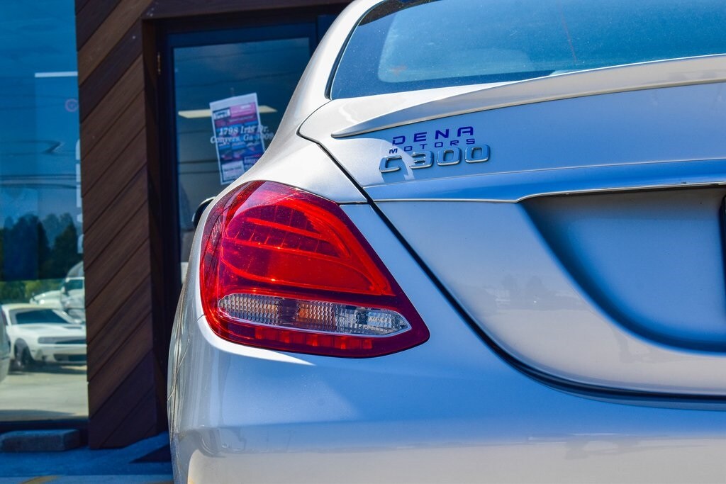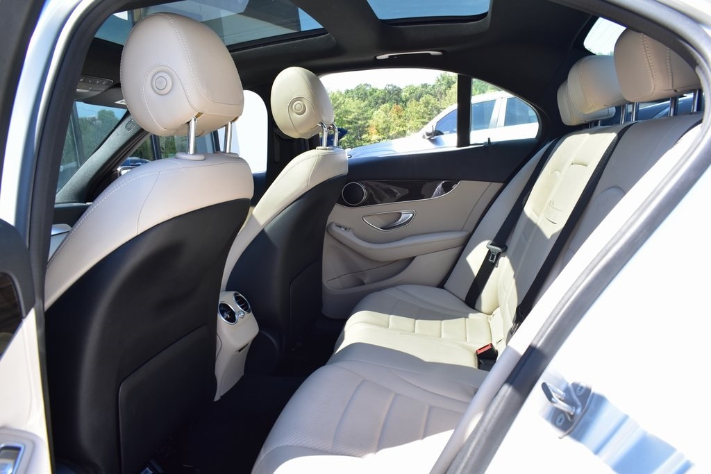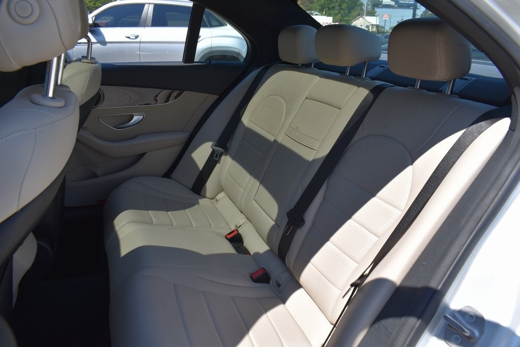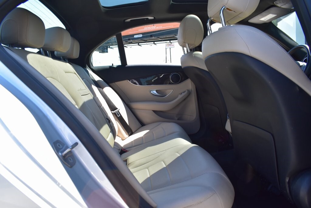 Silver 2018 Mercedes-Benz C-Class C 300 RWD 9-Speed Automatic 2.0L I4 Turbocharged2. Presented in elegant Iridium Silver Metallic with a refined Macchiato/Magma Grey interior, this luxury sedan blends style, comfort, and performance. Powered by a turbocharged 4-cylinder engine, it delivers impressive 24/33 MPG with responsive handling. Enjoy premium upgrades including a Panorama Roof, Heated Front Seats, Premium Package (Blind Spot Assist, SiriusXM, Keyless-Go), Smartphone Integration with Apple CarPlay, and Rearview Camera. The cabin features Dual-Zone Climate Control, Dark Brown Linden Wood Trim, Power Tilt/Telescoping Steering Column, and 40/20/40 split-folding rear seats for versatility. Exterior highlights such as 18-inch Twin 5-Spoke Wheels, Illuminated Star Emblem, LED Logo Projectors, and Rear Spoiler add to its sporty elegance. Advanced safety features include Collision Prevention Assist Plus, multiple airbags, BabySmart Child Seat Sensor, and Tire Pressure Monitoring, making this C 300 a perfect blend of sophistication, technology, and peace of mind.