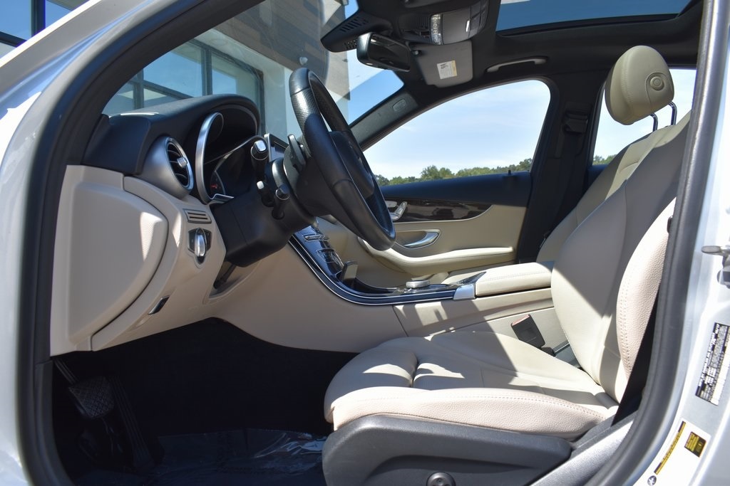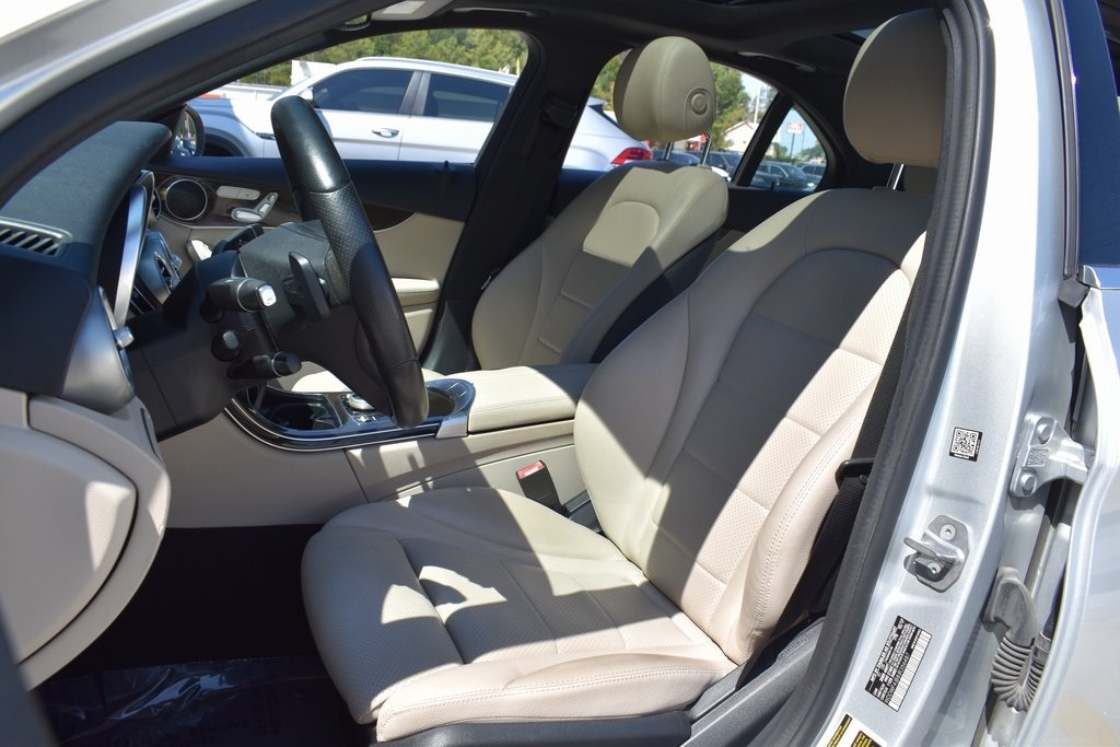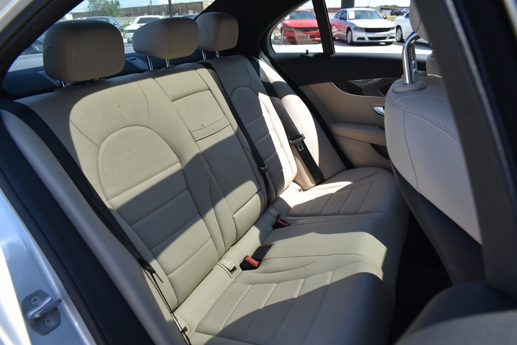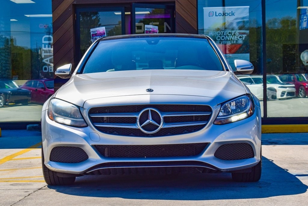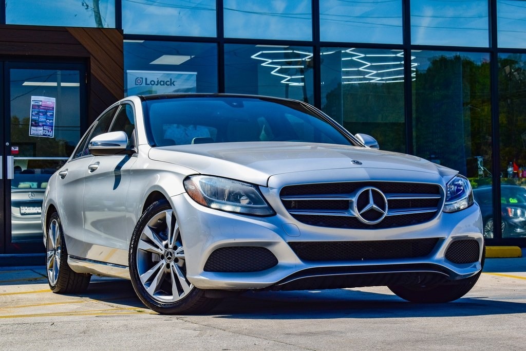 Silver 2018 Mercedes-Benz C-Class C 300 RWD 9-Speed Automatic 2.0L I4 Turbocharged2. Presented in elegant Iridium Silver Metallic with a refined Macchiato/Magma Grey interior, this luxury sedan blends style, comfort, and performance. Powered by a turbocharged 4-cylinder engine, it delivers impressive 24/33 MPG with responsive handling. Enjoy premium upgrades including a Panorama Roof, Heated Front Seats, Premium Package (Blind Spot Assist, SiriusXM, Keyless-Go), Smartphone Integration with Apple CarPlay, and Rearview Camera. The cabin features Dual-Zone Climate Control, Dark Brown Linden Wood Trim, Power Tilt/Telescoping Steering Column, and 40/20/40 split-folding rear seats for versatility. Exterior highlights such as 18-inch Twin 5-Spoke Wheels, Illuminated Star Emblem, LED Logo Projectors, and Rear Spoiler add to its sporty elegance. Advanced safety features include Collision Prevention Assist Plus, multiple airbags, BabySmart Child Seat Sensor, and Tire Pressure Monitoring, making this C 300 a perfect blend of sophistication, technology, and peace of mind.