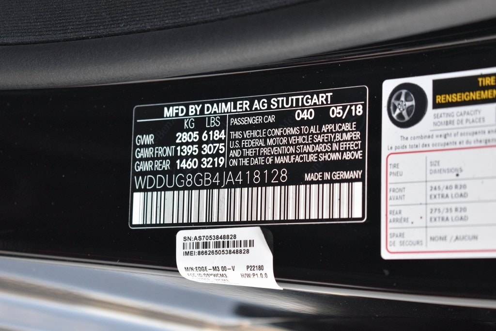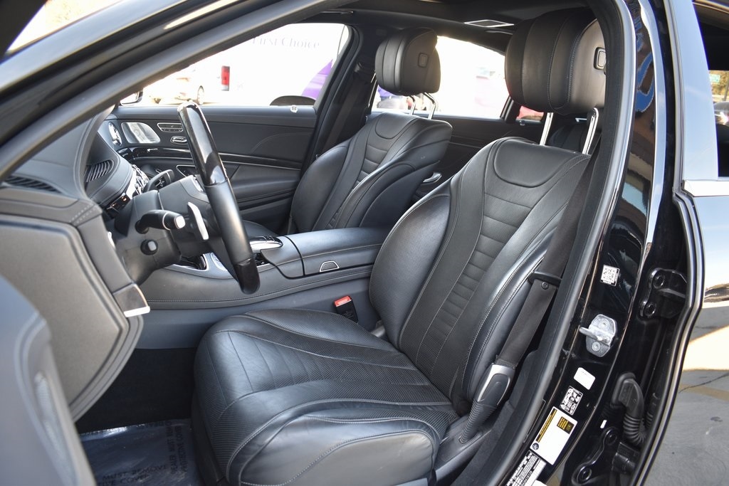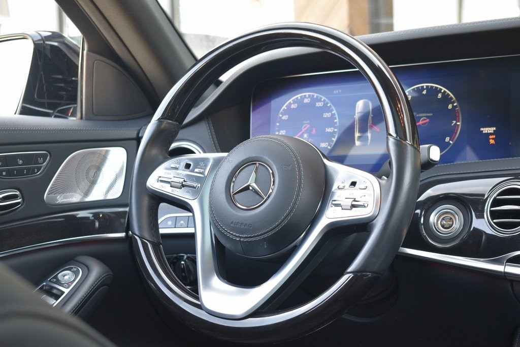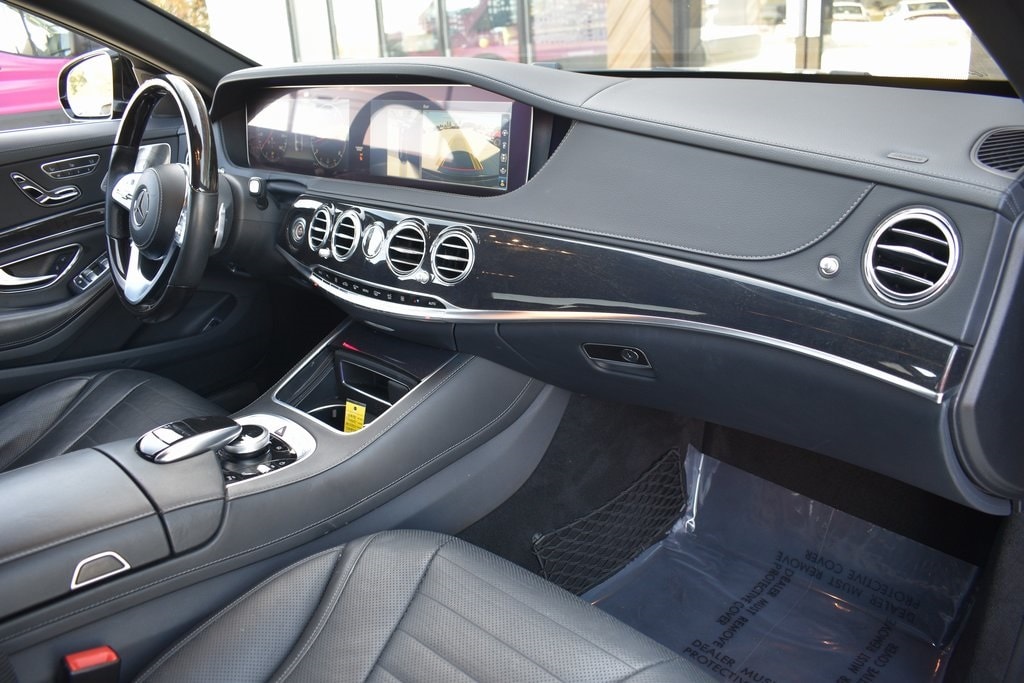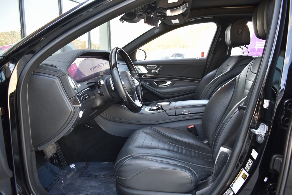 Black 2018 Mercedes-Benz S-Class S 560 4MATIC® 4MATIC® 9-Speed Automatic 4.0L V8 4MATIC®, Black Leather, 13 Speakers, 4-Wheel Disc Brakes, ABS brakes, Active Distance Assist DISTRONIC®, Active Lane Change Assist, Active Steering Assist, Adaptive suspension, Air Conditioning, Alloy wheels, AM/FM radio: SiriusXM, Android Auto®, Apple CarPlay®, Apple CarPlay®/Android Auto®, Auto High-beam Headlights, Auto tilt-away steering wheel, Auto-dimming door mirrors, Auto-dimming Rear-View mirror, Auto-leveling suspension, Automatic Speed Takeover, Automatic temperature control, Brake assist, Bumpers: body-color, Burmester® Surround Sound System, Child-Seat-Sensing Airbag, Compass, Delay-off headlights, Door auto-latch, Driver Assistance Package, Driver Assistance Package (23P), Driver door bin, Driver vanity mirror, Dual front impact airbags, Dual front side impact airbags, Electronic Stability Control, Emergency communication system: eCall Emergency System, Extended Restart by Stop & Go, Exterior Parking Camera Rear, Four wheel independent suspension, Front anti-roll bar, Front Bucket Seats, Front Center Armrest, Front dual zone A/C, Front reading lights, Front Variable Heated Seats, Garage door transmitter: Homelink, Genuine wood console insert, Genuine wood door panel insert, HANDS-FREE ACCESS, Head restraints memory, Heated & Ventilated Front Seats, Heated door mirrors, Heated Front Seats, Heated front seats, HVAC memory, Illuminated entry, KEYLESS GO®, KEYLESS GO® Comfort Package, Knee airbag, Low tire pressure warning, Memory seat, Multicontour Front Seats w/Massage Feature, Navigation Map Updates for 3 Years, Navigation system: COMAND®, Occupant sensing airbag, Outside temperature display, Overhead airbag, Overhead console, Panic alarm, Parking Pilot w/Surround View System, Passenger door bin, Passenger vanity mirror, Perforated Nappa Leather Upholstery, Power adjustable front head restraints, Power adjustable rear head restraints, Power door mirrors, Power driver seat, Power Front Seats w/Memory, Power moonroof: Panorama, Power passenger seat, Power Rear-Window Sunshades, Power steering, Power windows, Pre-Wiring for CD Player, Premium audio system: COMAND®, Premium Package, Radio data system, Radio: COMAND® w/Navigation, Rain sensing wipers, Rear anti-roll bar, Rear fog lights, Rear reading lights, Rear seat center armrest, Rear Seat Entertainment Package, Rear side impact airbag, Rear Window Blind, Rear window defroster, Remote keyless entry, Route Based Speed Adaptation, Security system, SiriusXM Satellite Radio, Smartphone Integration, Speed control, Speed Limit Assist, Speed-sensing steering, Steering wheel memory, Steering wheel mounted audio controls, Surround View Camera, Tachometer, Telescoping steering wheel, Tilt steering wheel, Traction control, Trip computer, Turn signal indicator mirrors, Variably intermittent wipers, Weather band radio, Wheels: 20" Multispoke.