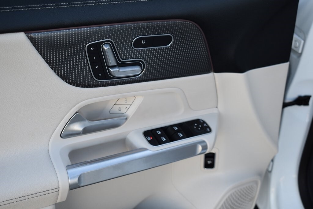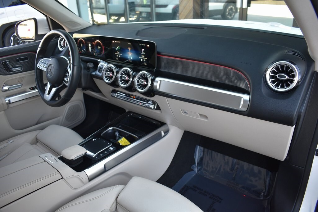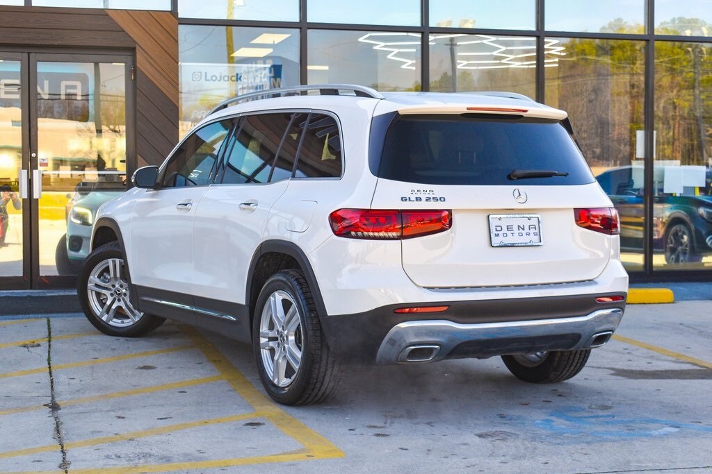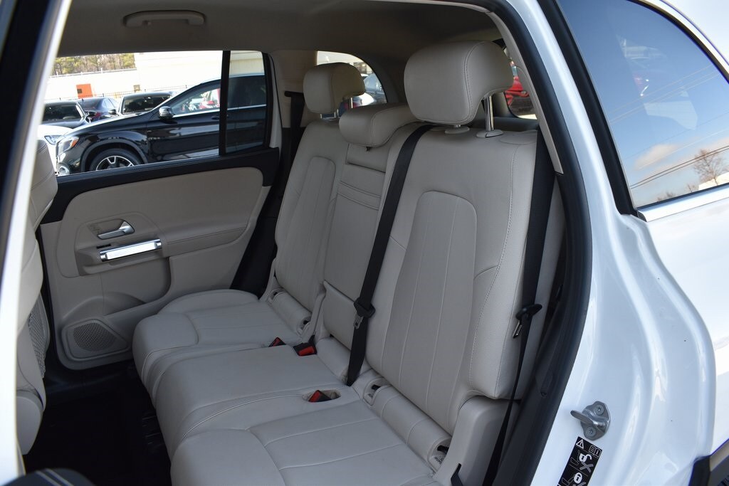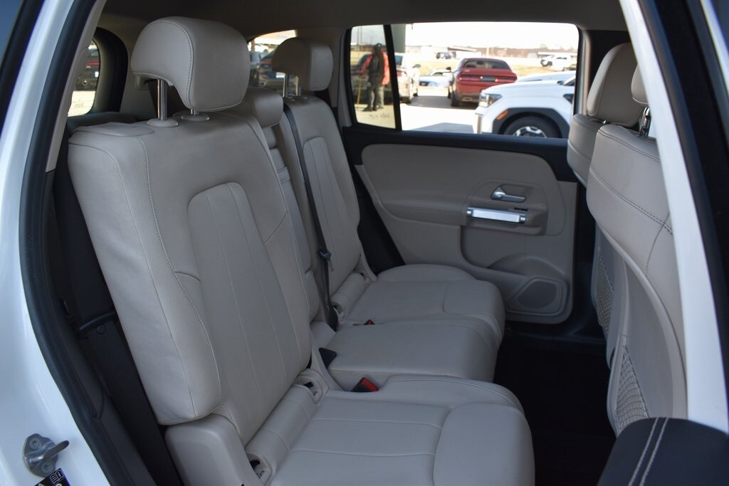 White 2021 Mercedes-Benz GLB GLB 250 FWD 8-Speed Automatic 2.0L I4 DI Turbocharged 10.25" Digital Instrument Cluster, 10.25" Media Display w/Touchscreen, 3rd Row Seat, 4-Way Power Lumbar Support, 4-Wheel Disc Brakes, 8 Speakers, 8-Way Power Front Seats w/Memory, ABS brakes, Air Conditioning, Alloy wheels, AM/FM radio, Android Auto®, Apple CarPlay®, Apple CarPlay®/Android Auto®, Auto-Dimming Rearview & Driver-Side Mirrors, Automatic temperature control, Brake assist, Bumpers: body-color, Child-Seat-Sensing Airbag, Delay-off headlights, Driver door bin, Driver vanity mirror, Dual front impact airbags, Dual front side impact airbags, Electronic Stability Control, Emergency communication system: Mercedes-Benz Emergency Call Service, Exterior Parking Camera Rear, Four wheel independent suspension, Front anti-roll bar, Front Bucket Seats, Front Center Armrest, Front dual zone A/C, Front fog lights, Front reading lights, Fully automatic headlights, Hands-Free Access, HD Radio, Heated door mirrors, Heated Front Seats, Heated Steering Wheel, Illuminated entry, KEYLESS GO®, Knee airbag, Low tire pressure warning, MB-Tex Upholstery, MBUX Voice Control, Memory seat, Occupant sensing airbag, Outside temperature display, Overhead airbag, Overhead console, Panic alarm, Passenger door bin, Passenger vanity mirror, Power door mirrors, Power driver seat, Power Folding Exterior Mirrors, Power Liftgate, Power passenger seat, Power steering, Power windows, Premium audio system: MBUX, Premium Package, Radio data system, Radio: MBUX Multimedia System, Rear anti-roll bar, Rear fog lights, Rear reading lights, Rear window defroster, Remote keyless entry, Roof rack: rails only, Round Multifunction Steering Wheel in Leather, Security system, Smartphone Integration, Speed control, Speed-sensing steering, Split folding rear seat, Spoiler, Steering wheel mounted audio controls, Tachometer, Telescoping steering wheel, Tilt steering wheel, Traction control, Trip computer, Turn signal indicator mirrors, Wheels: 18" Twin 5-Spoke.