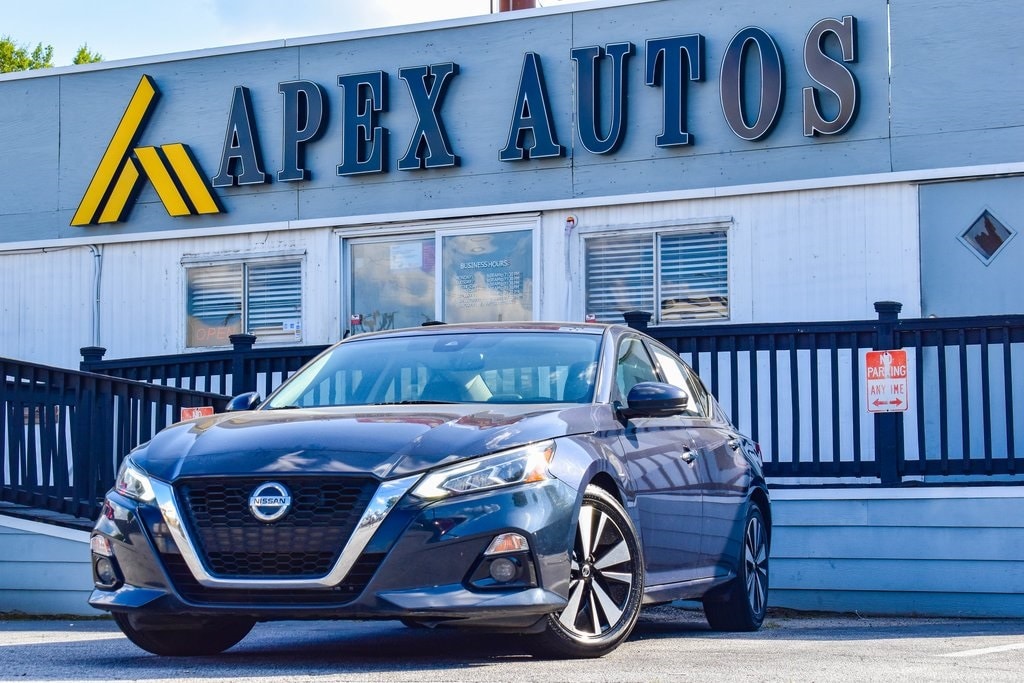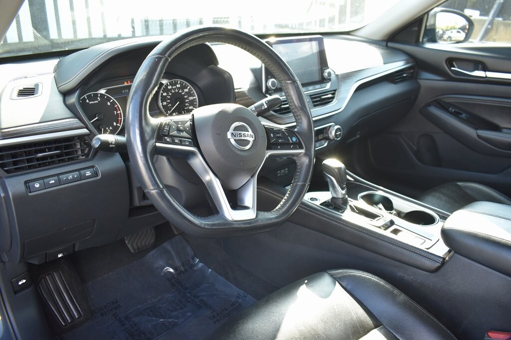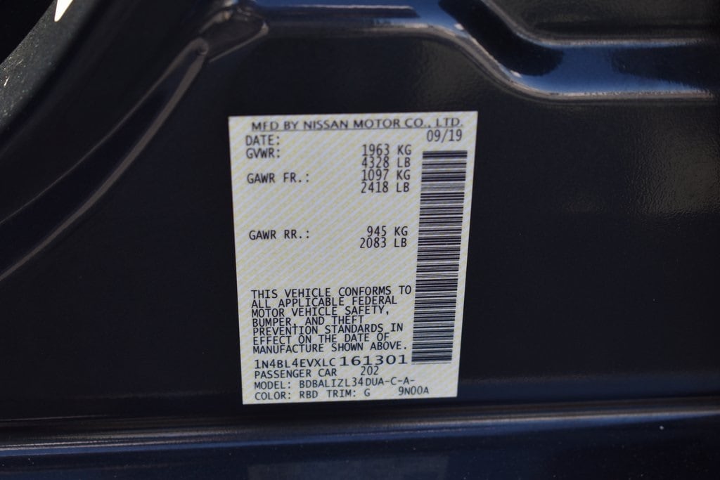 Storm Blue Metallic 2020 Nissan Altima 2.5 SL FWD CVT with Xtronic 2.5L 4-Cylinder DOHC 16V CVT with Xtronic, 17" Alloy Wheels, 4-Wheel Disc Brakes, 9 Speakers, ABS brakes, Air Conditioning, Alloy wheels, AM/FM radio: SiriusXM, Auto High-beam Headlights, Auto-dimming Rear-View mirror, Automatic temperature control, Blind Spot Warning, Brake assist, Bumpers: body-color, Compass, Delay-off headlights, Driver door bin, Driver vanity mirror, Dual front impact airbags, Dual front side impact airbags, Electronic Stability Control, Emergency communication system: NissanConnect Services, Floor Mats/Trunk Mat/Hideaway Net, Four wheel independent suspension, Front anti-roll bar, Front Bucket Seats, Front Center Armrest, Front dual zone A/C, Front fog lights, Front reading lights, Fully automatic headlights, Garage door transmitter: HomeLink, Heated door mirrors, Heated Front Bucket Seats, Heated front seats, Heated steering wheel, Illuminated entry, Knee airbag, Leather Shift Knob, Leather-Appointed Seat Trim, Low tire pressure warning, Navigation System, NissanConnect featuring Apple CarPlay and Android Auto, Occupant sensing airbag, Outside temperature display, Overhead airbag, Overhead console, Panic alarm, Passenger door bin, Passenger vanity mirror, Power door mirrors, Power driver seat, Power moonroof, Power passenger seat, Power steering, Power windows, Radio: AM/FM/HD w/Bose Premium Sound System, Rear anti-roll bar, Rear Parking Sensors, Rear reading lights, Rear seat center armrest, Rear side impact airbag, Rear window defroster, Remote keyless entry, Security system, Speed control, Speed-sensing steering, Speed-Sensitive Wipers, Split folding rear seat, Sport steering wheel, Steering wheel mounted audio controls, Tachometer, Telescoping steering wheel, Tilt steering wheel, Traction control, Trip computer, Turn signal indicator mirrors, Variably intermittent wipers.