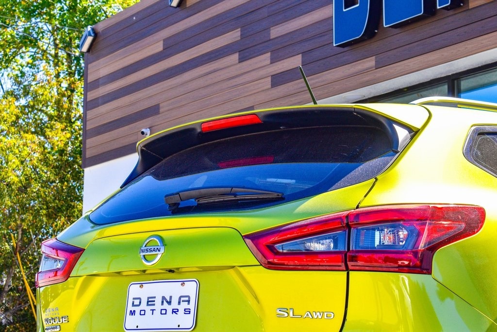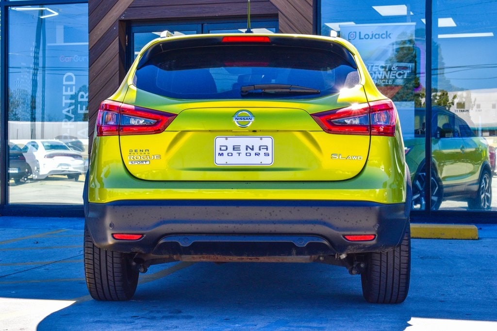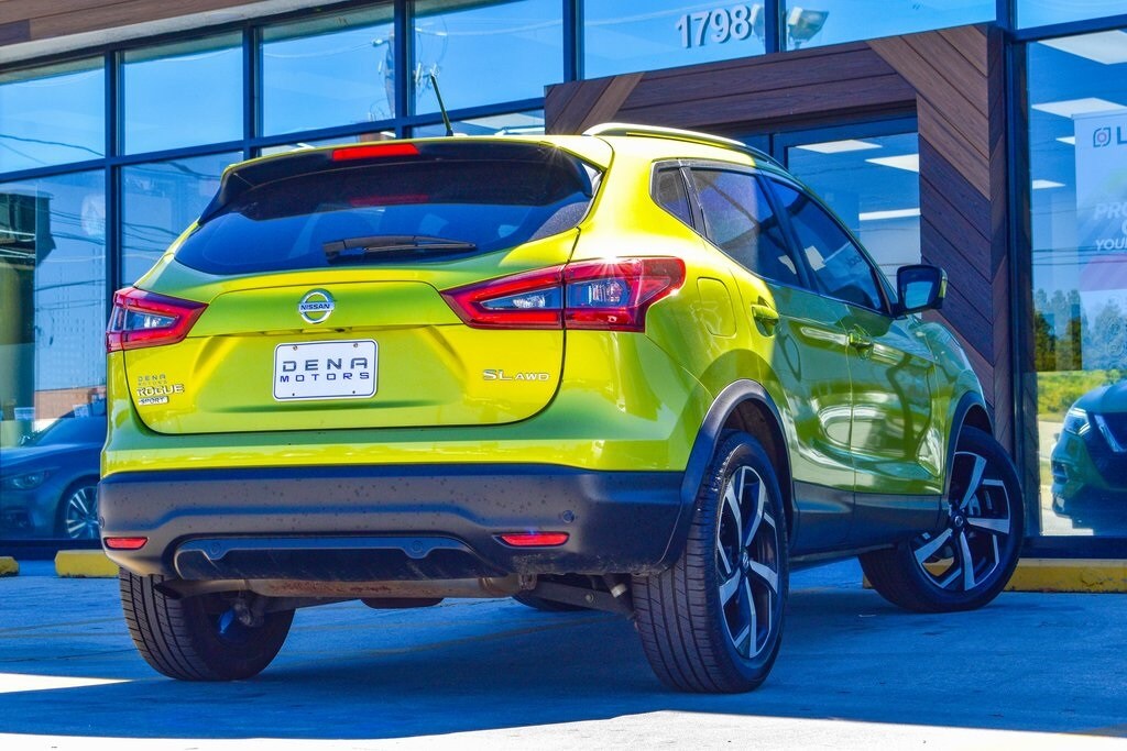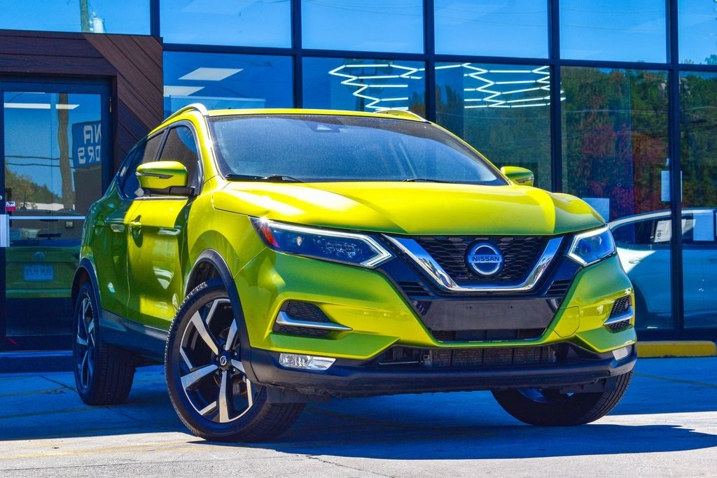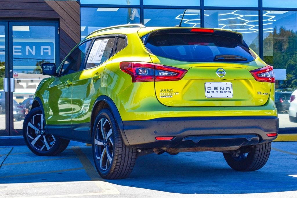 Nitro Lime Metallic 2021 Nissan Rogue Sport SL AWD CVT with Xtronic 2.0L DOHC 4-Way Power Passenger Seat, 4-Wheel Disc Brakes, 6 Speakers, 6.386 Axle Ratio, ABS brakes, Air Conditioning, Alloy wheels, AM/FM radio: SiriusXM, Auto High-beam Headlights, Auto-Dimming Inside Mirror, Automatic temperature control, Blind Spot Warning, Bose Premium Audio System w/Dual Driver Subwoofer, Brake assist, Bumpers: body-color, CD player, Delay-off headlights, Driver door bin, Driver Seat Memory, Driver vanity mirror, Dual front impact airbags, Dual front side impact airbags, Electronic Stability Control, Emergency communication system: NissanConnect Services, Fog Lamps, Four wheel independent suspension, Front anti-roll bar, Front Bucket Seats, Front Center Armrest, Front dual zone A/C, Front reading lights, Fully automatic headlights, Heated door mirrors, Heated front seats, Heated steering wheel, Illuminated entry, Knee airbag, Leather-Appointed Seat Trim, LED Low & High Beam Headlights, Low tire pressure warning, Navigation system: NissanConnect Navigation, NissanConnect featuring Apple CarPlay and Android Auto, NissanConnect Services Powered By SiriusXM, Occupant sensing airbag, Outside Mirrors w/Memory, Outside temperature display, Overhead airbag, Overhead console, Passenger door bin, Passenger vanity mirror, Power door mirrors, Power driver seat, Power passenger seat, Power Sliding Moonroof, Power steering, Power windows, Premium Package, Quick Comfort Heated Front Bucket Seats, Radio data system, Radio: AM/FM NissanConnect w/Navigation, Rear anti-roll bar, Rear Parking Sensors, Rear seat center armrest, Rear side impact airbag, Rear window defroster, Rear window wiper, Remote keyless entry, Speed control, Speed-sensing steering, Speed-Sensitive Wipers, Split folding rear seat, Spoiler, Steering wheel mounted audio controls, Tachometer, Telescoping steering wheel, Tilt steering wheel, Traction control, Trip computer, Turn signal indicator mirrors, Variably intermittent wipers, Wheels: 19" x 7.0" Aluminum Alloy.