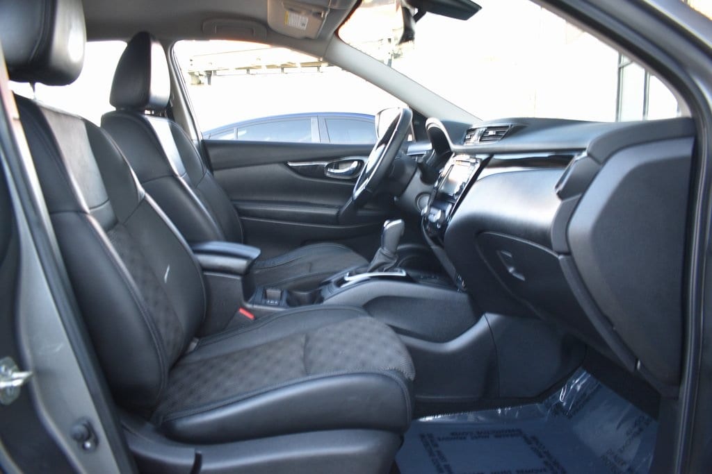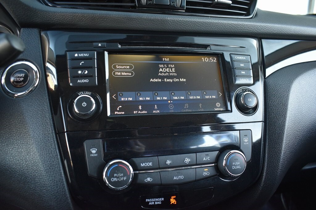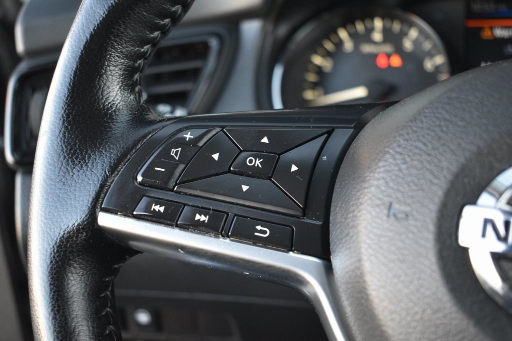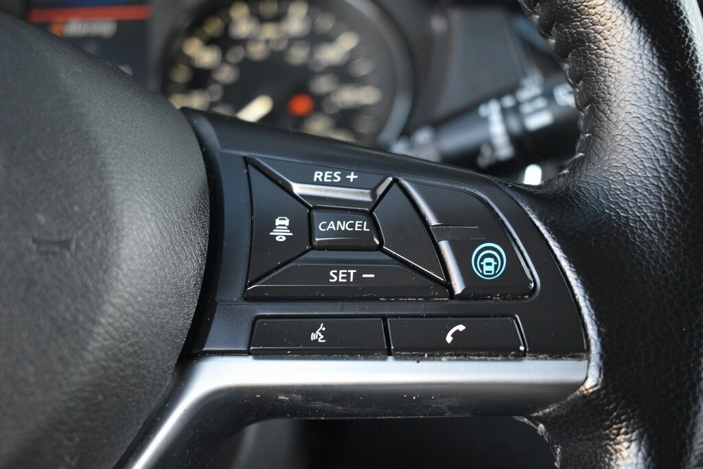 This vehicle comes equipped with Technology Package (Driver Seat Memory, Electronic Parking Brake, Intelligent Around View Monitor (I-AVM), Intelligent Cruise Control, Intelligent Driver Alertness (I-DA), Leatherette/Part Leather Seat Trim, Outside Mirrors w/Memory, ProPILOT Assist, and Steering Assist), 2-Piece Carpeted Cargo Area Protector & Floor Mats, 4-Wheel Disc Brakes, 6 Speakers, 6.386 Axle Ratio, ABS brakes, Air Conditioning, Alloy wheels, AM/FM Radio, AM/FM radio: SiriusXM, Auto High-beam Headlights, Automatic temperature control, Blind Spot Warning, Brake assist, Bumpers: body-color, CD player, Chrome Rear Bumper Protector, Cloth Seat Trim, Delay-off headlights, Driver door bin, Driver vanity mirror, Dual front impact airbags, Dual front side impact airbags, Electronic Stability Control, First Aid Kit, Four wheel independent suspension, Front anti-roll bar, Front Bucket Seats, Front Center Armrest, Front dual zone A/C, Front fog lights, Front reading lights, Fully automatic headlights, Heated door mirrors, Heated front seats, Heated steering wheel, Illuminated entry, Knee airbag, Low tire pressure warning, NissanConnect featuring Apple CarPlay and Android Auto, Occupant sensing airbag, Outside temperature display, Overhead airbag, Overhead console, Panic alarm, Passenger door bin, Passenger vanity mirror, Power door mirrors, Power driver seat, Power steering, Power windows, Quick Comfort Heated Front Bucket Seats, Radio data system, Rear anti-roll bar, Rear Parking Sensors, Rear seat center armrest, Rear side impact airbag, Rear window defroster, Rear window wiper, Remote keyless entry, Security system, Speed control, Speed-sensing steering, Speed-Sensitive Wipers, Splash Guards, Split folding rear seat, Spoiler, Steering wheel mounted audio controls, Tachometer, Telescoping steering wheel, Tilt steering wheel, Traction control, Trip computer, Turn signal indicator mirrors, Variably intermittent wipers, and Wheels: 17" x 7.0" Aluminum Alloy .