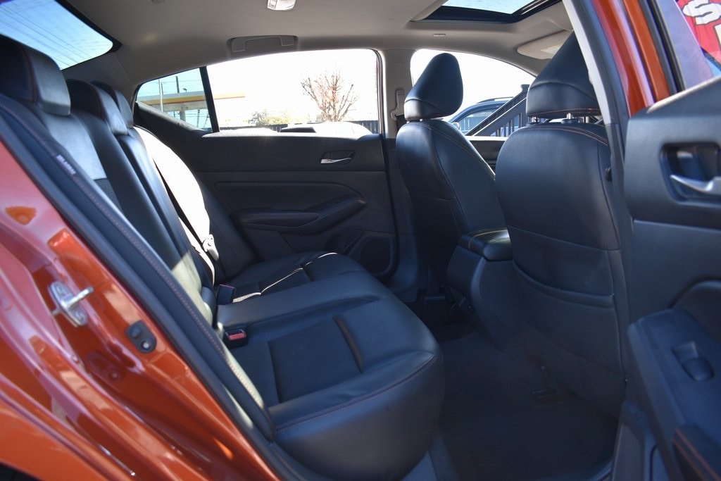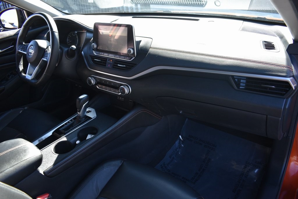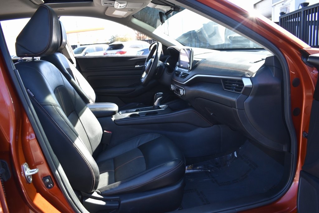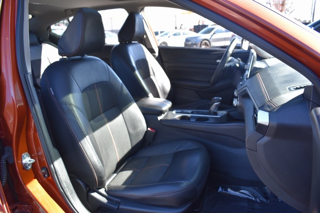 Sunset Drift Chromaflair 2022 Nissan Altima 2.0 SR FWD CVT with Xtronic 2.0L I4 PDI Turbocharged DOHC 16V LEV3-ULEV70 236hp CVT with Xtronic, 4-Wheel Disc Brakes, 6 Speakers, ABS brakes, Air Conditioning, AM/FM radio: SiriusXM, Auto High-beam Headlights, Blind Spot Warning, Body-Colored Splash Guards, Brake assist, Bumpers: body-color, Chrome Bumper Protector, Delay-off headlights, Dual front impact airbags, Dual front side impact airbags, Electronic Stability Control, Emergency Roadside Kit Delete, Four wheel independent suspension, Front anti-roll bar, Front Bucket Seats, Front Center Armrest, Fully automatic headlights, Heated door mirrors, Heated Front Bucket Seats, Heated front seats, Illuminated entry, Knee airbag, Leather Shift Knob, Low tire pressure warning, NissanConnect featuring Apple CarPlay and Android Auto, Occupant sensing airbag, Power door mirrors, Power driver seat, Power moonroof, Power steering, Power windows, Radio data system, Radio: AM/FM Audio System, Rear Parking Sensors, Rear side impact airbag, Rear window defroster, Remote keyless entry, Speed control, Speed-sensing steering, Split folding rear seat, Sport Seat Trim, Steering wheel mounted audio controls, Traction control, Turn signal indicator mirrors.