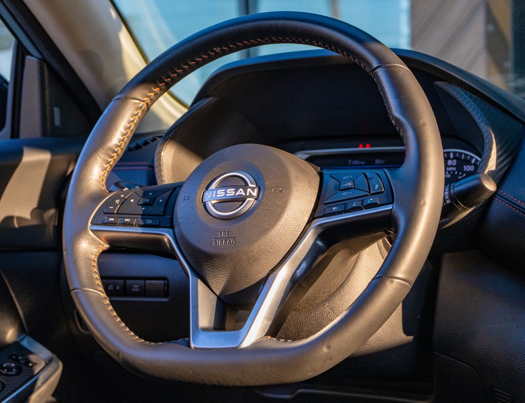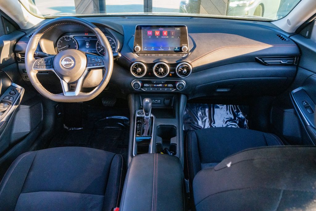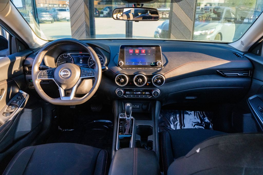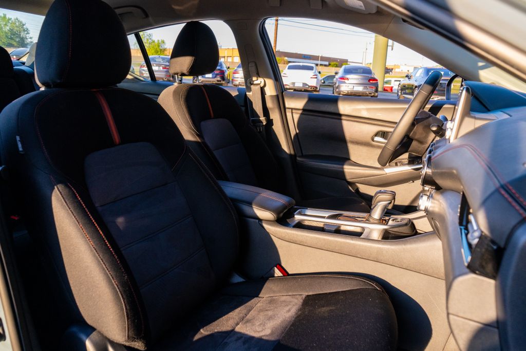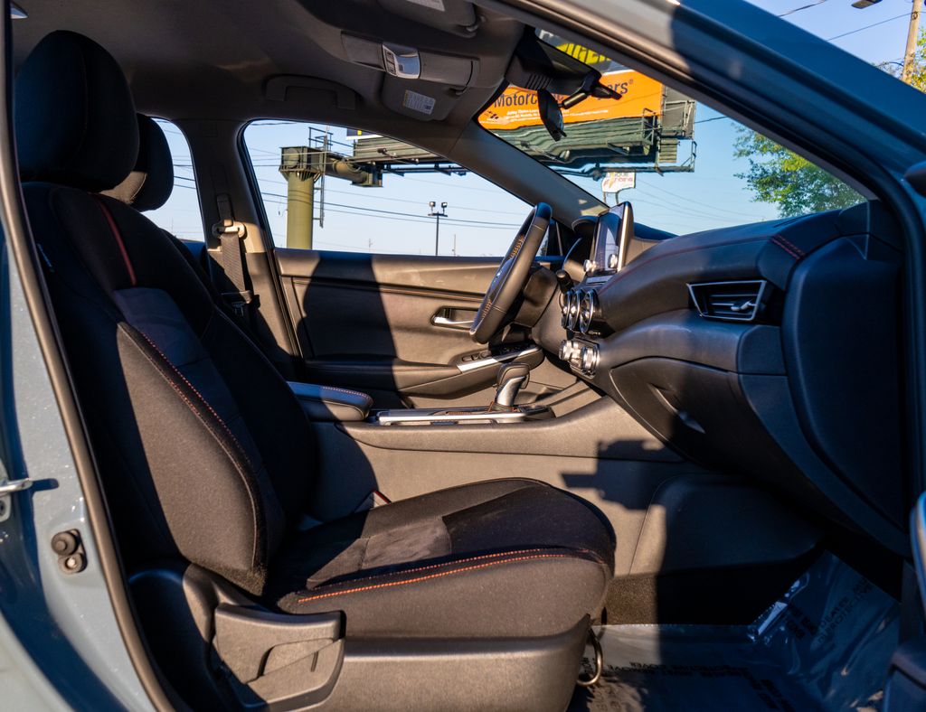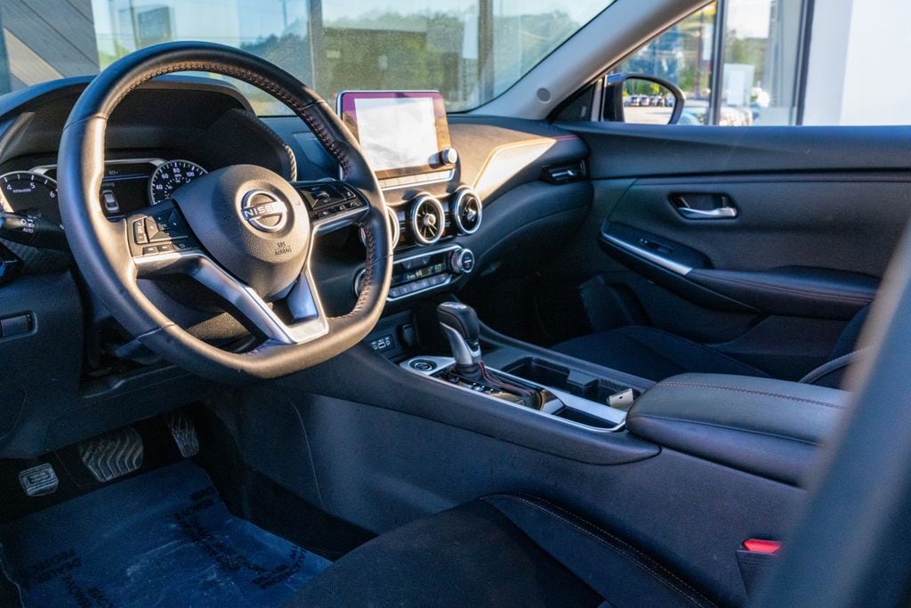 This vehicle comes equipped with CVT with Xtronic, Sport Cloth, 18" Alloy Wheels, 18" Black Alloy Wheels, 4-Wheel Disc Brakes, 6 Speakers, ABS brakes, Air Conditioning, Alloy wheels, AM/FM radio: SiriusXM, Auto High-beam Headlights, Automatic temperature control, Blind Spot Warning, Brake assist, Bumpers: body-color, Carpeted Floor Mats w/Trunk Mat, Clear Rear Bumper Protector, Delay-off headlights, Door Sill Plates, Driver door bin, Driver vanity mirror, Dual front impact airbags, Dual front side impact airbags, Electronic Stability Control, Four wheel independent suspension, Front anti-roll bar, Front Bucket Seats, Front Center Armrest, Front dual zone A/C, Front reading lights, Fully automatic headlights, Heated door mirrors, Heated Front Bucket Seats, Heated front seats, Illuminated entry, Knee airbag, Leather Shift Knob, Leather steering wheel, Low tire pressure warning, Map Pocket Lighting, NissanConnect featuring Apple CarPlay and Android Auto, Occupant sensing airbag, Outside temperature display, Overhead airbag, Overhead console, Panic alarm, Passenger door bin, Passenger vanity mirror, Power door mirrors, Power steering, Power windows, Radio data system, Radio: AM/FM w/RDS/MP3/Aux-In, Rear anti-roll bar, Rear Parking Sensors, Rear seat center armrest, Rear side impact airbag, Rear window defroster, Remote keyless entry, Security system, Speed control, Speed-sensing steering, Split folding rear seat, Spoiler, Sport Cloth Seat Trim, Steering wheel mounted audio controls, Tachometer, Telescoping steering wheel, Tilt steering wheel, Traction control, Trip computer, Turn signal indicator mirrors, and Variably intermittent wipers .