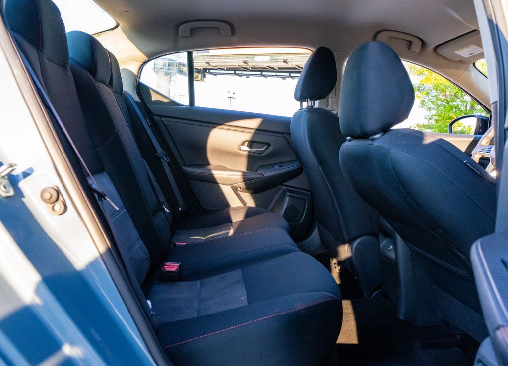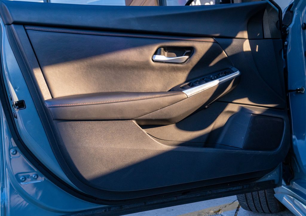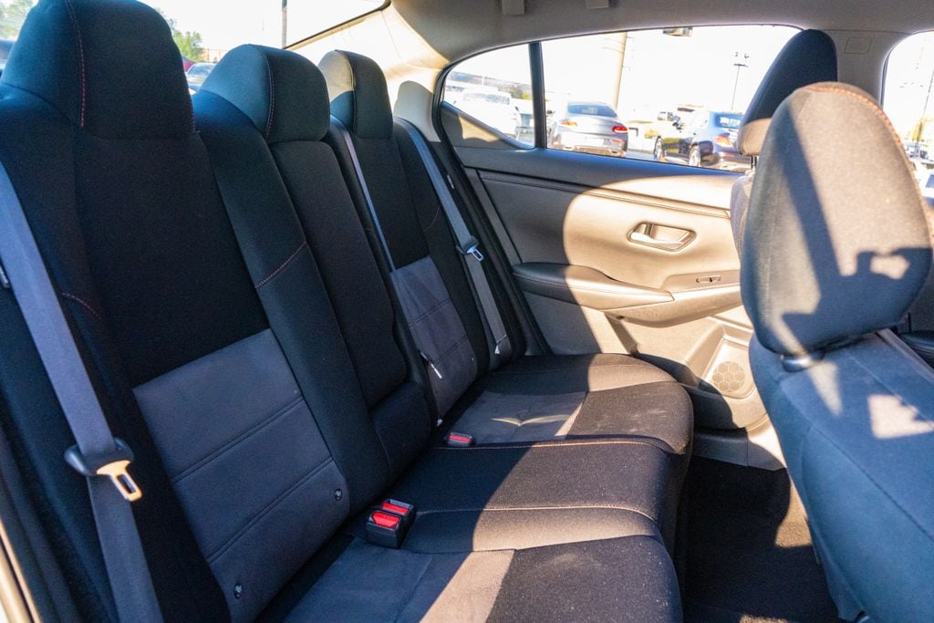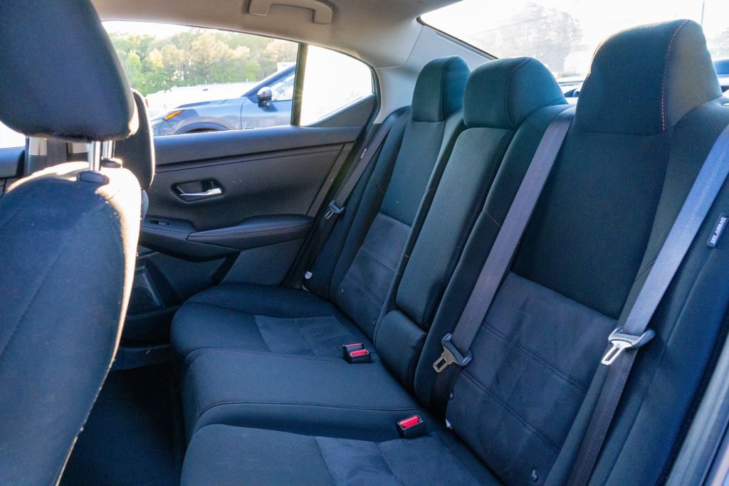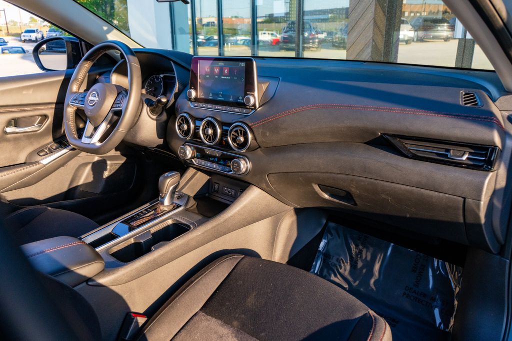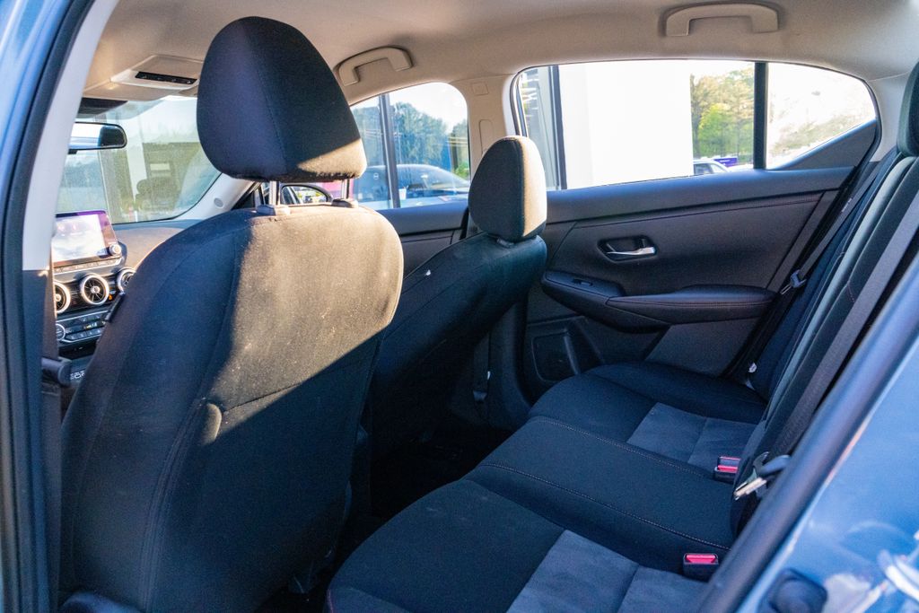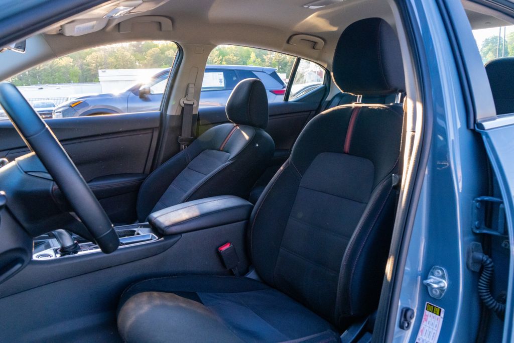 This vehicle comes equipped with CVT with Xtronic, Sport Cloth, 18" Alloy Wheels, 18" Black Alloy Wheels, 4-Wheel Disc Brakes, 6 Speakers, ABS brakes, Air Conditioning, Alloy wheels, AM/FM radio: SiriusXM, Auto High-beam Headlights, Automatic temperature control, Blind Spot Warning, Brake assist, Bumpers: body-color, Carpeted Floor Mats w/Trunk Mat, Clear Rear Bumper Protector, Delay-off headlights, Door Sill Plates, Driver door bin, Driver vanity mirror, Dual front impact airbags, Dual front side impact airbags, Electronic Stability Control, Four wheel independent suspension, Front anti-roll bar, Front Bucket Seats, Front Center Armrest, Front dual zone A/C, Front reading lights, Fully automatic headlights, Heated door mirrors, Heated Front Bucket Seats, Heated front seats, Illuminated entry, Knee airbag, Leather Shift Knob, Leather steering wheel, Low tire pressure warning, Map Pocket Lighting, NissanConnect featuring Apple CarPlay and Android Auto, Occupant sensing airbag, Outside temperature display, Overhead airbag, Overhead console, Panic alarm, Passenger door bin, Passenger vanity mirror, Power door mirrors, Power steering, Power windows, Radio data system, Radio: AM/FM w/RDS/MP3/Aux-In, Rear anti-roll bar, Rear Parking Sensors, Rear seat center armrest, Rear side impact airbag, Rear window defroster, Remote keyless entry, Security system, Speed control, Speed-sensing steering, Split folding rear seat, Spoiler, Sport Cloth Seat Trim, Steering wheel mounted audio controls, Tachometer, Telescoping steering wheel, Tilt steering wheel, Traction control, Trip computer, Turn signal indicator mirrors, and Variably intermittent wipers .