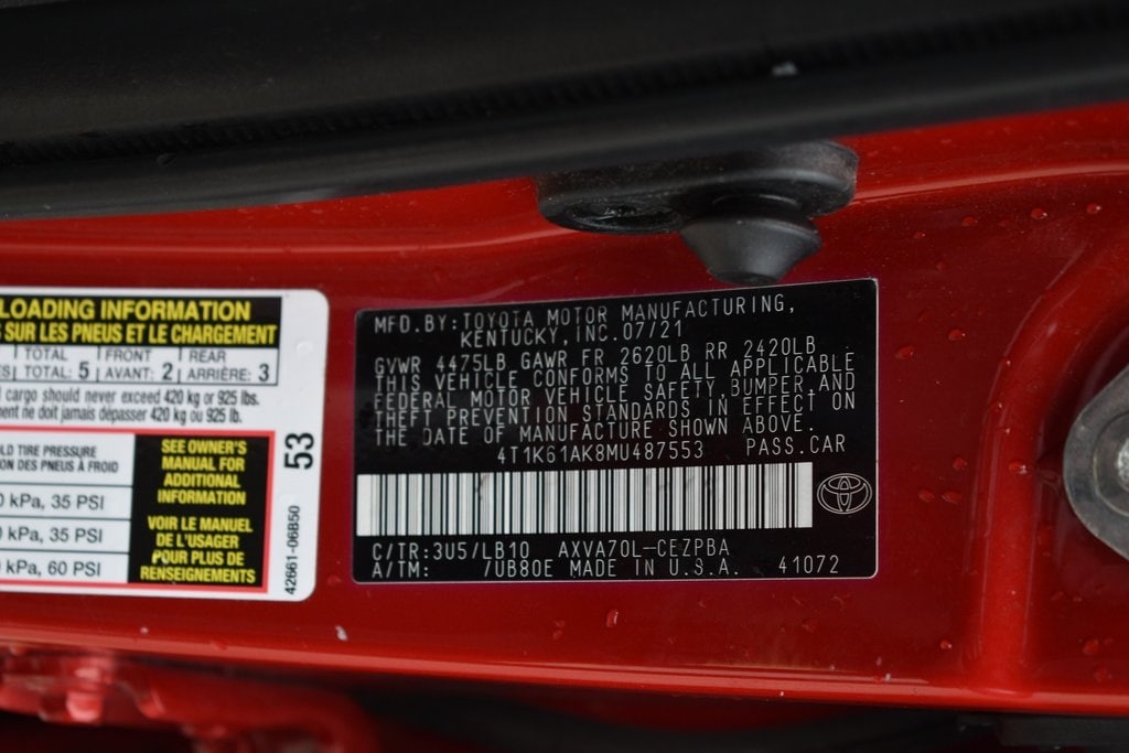 With an impressive EPA-estimated 27 MPG city and 38 MPG highway, this Camry XSE delivers outstanding fuel efficiency without sacrificing performance or style. Known for long-term dependability and strong resale value, the 2021 Camry XSE is an excellent choice for buyers seeking quality, safety, and sporty appeal in one complete package. Clean CARFAX, odometer is 5770 miles below market average!