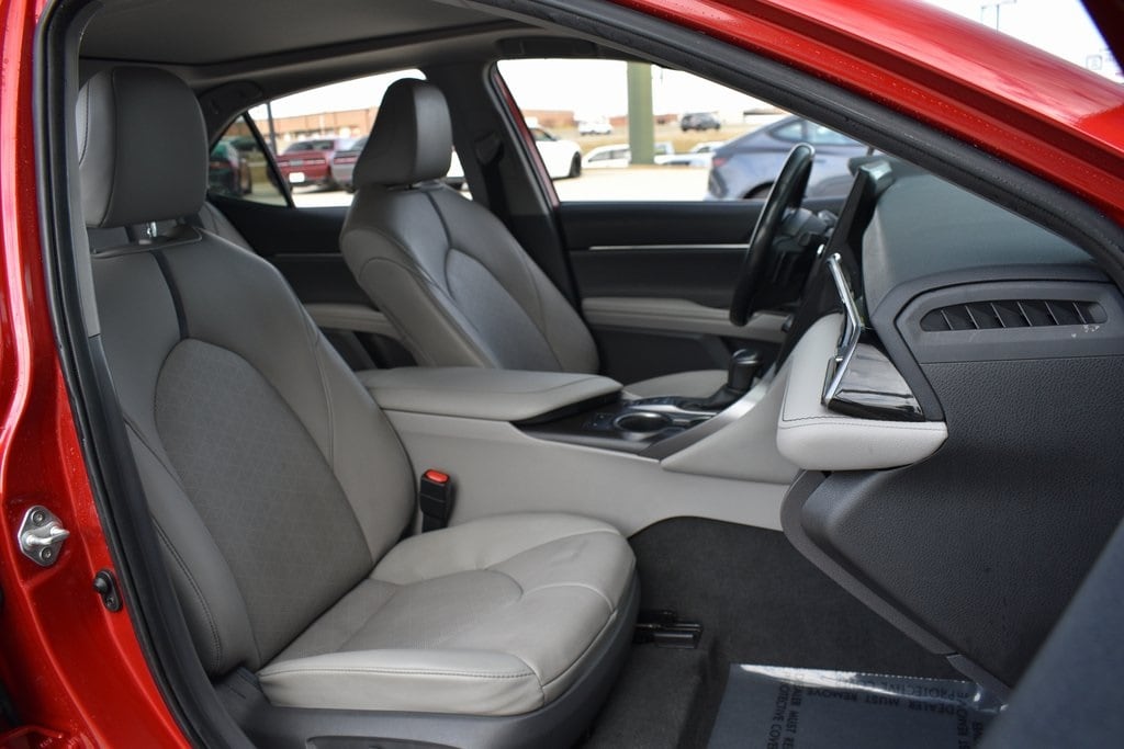 Inside, the Camry XSE features a well-appointed cabin designed for comfort and convenience. Highlights include leather-trimmed heated front seats, a power-adjustable drivers seat, dual-zone automatic climate control, smart key with push-button start, and a leather-wrapped steering wheel. Ample passenger space and a spacious trunk make this sedan practical for families and professionals alike.